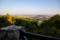 Fenyőfák lombja között pillanthatjuk meg az alattunk elterülő várost