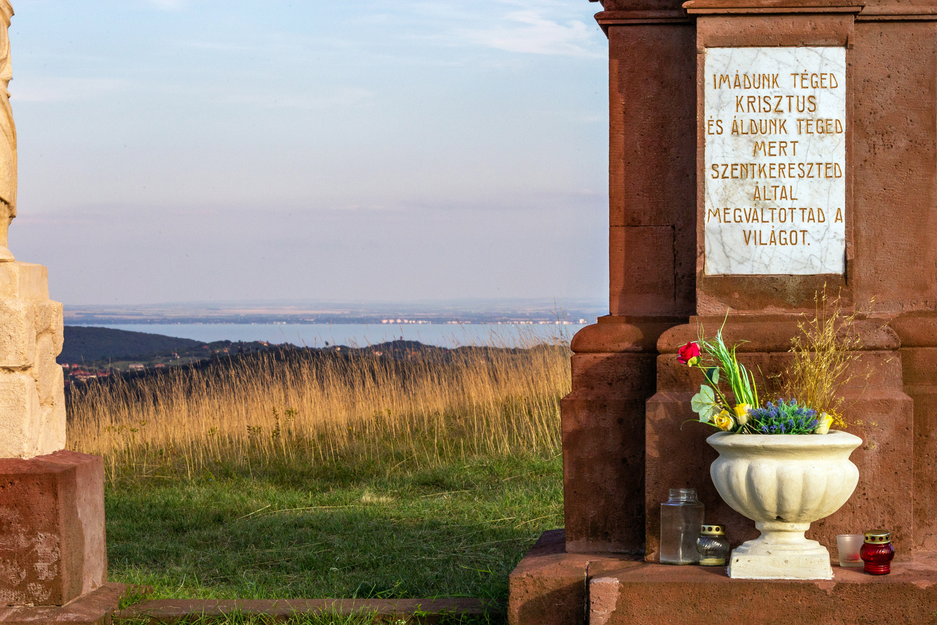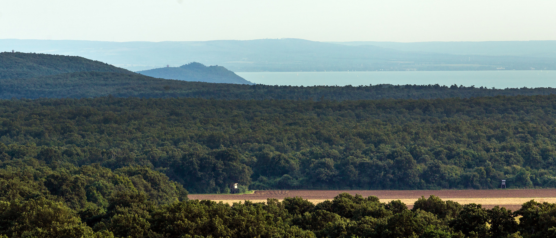 A hegy tetejéről már jól látható a Balaton türkiz csíkja a nem is olyan távoli tájban