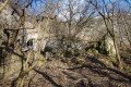 Remeteszőlős látképe a Remete-hegyi-kőfülkével a Hosszú-erdő-hegy szikláiról