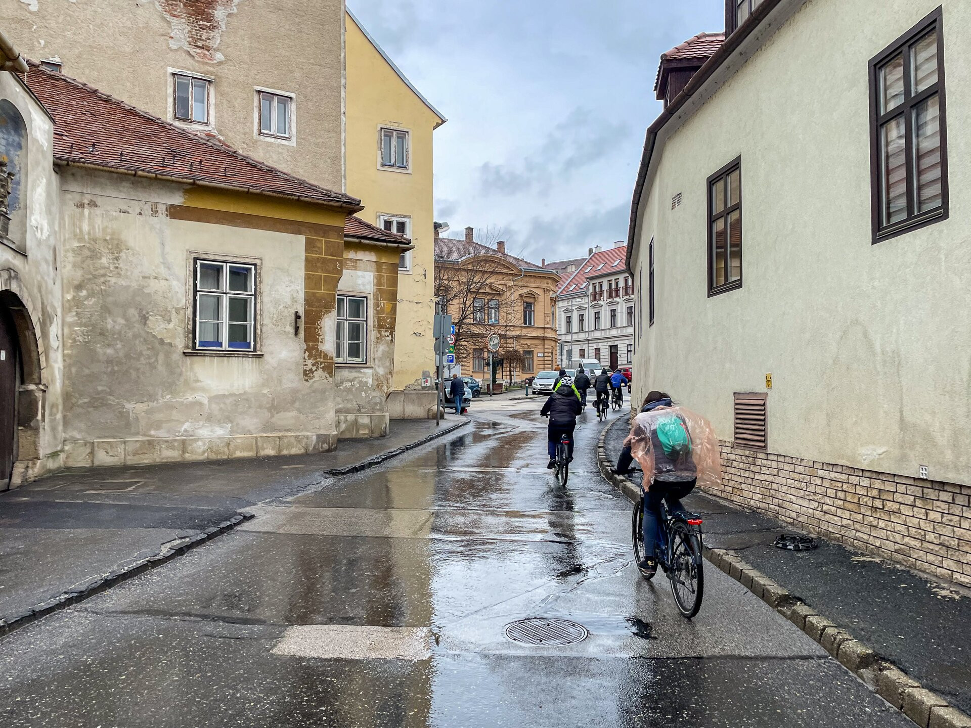 Egész Sopronra ki lehetne tenni a "kerékpárosbarát" plecsnit, mert bringautak szelik keresztül-kasul. Itt még abban bíztunk, hogy eláll majd az eső...