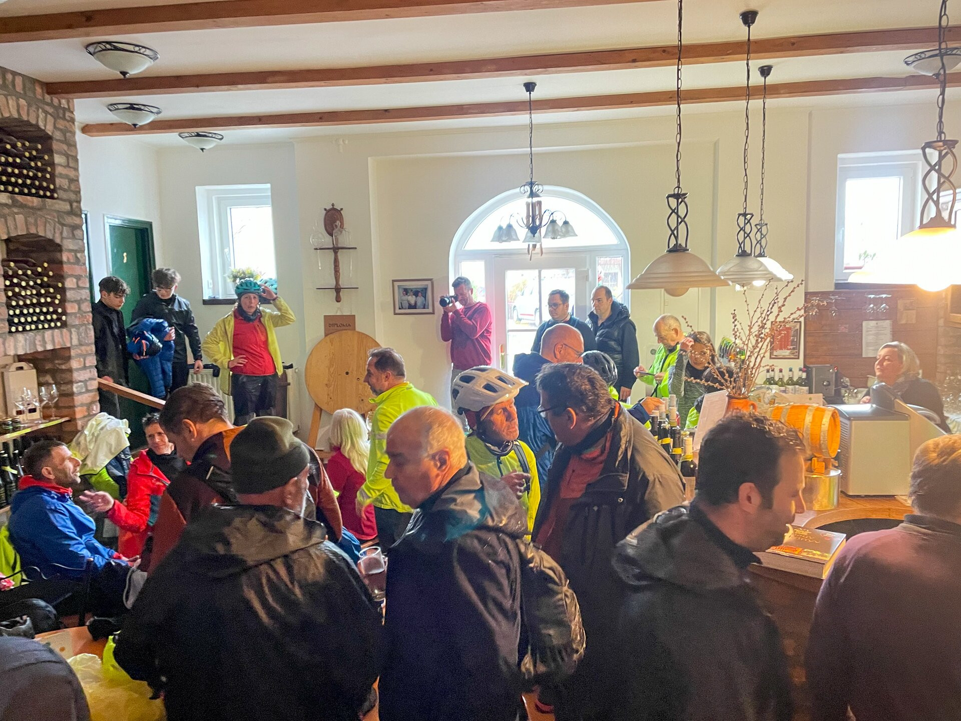 Úgy eláztunk, hogy amikor elhagytuk ezt a helyes (és természetesen kerékpárosbarát) borozót, bokáig állt utánunk a víz. Ez úton is elnézést...