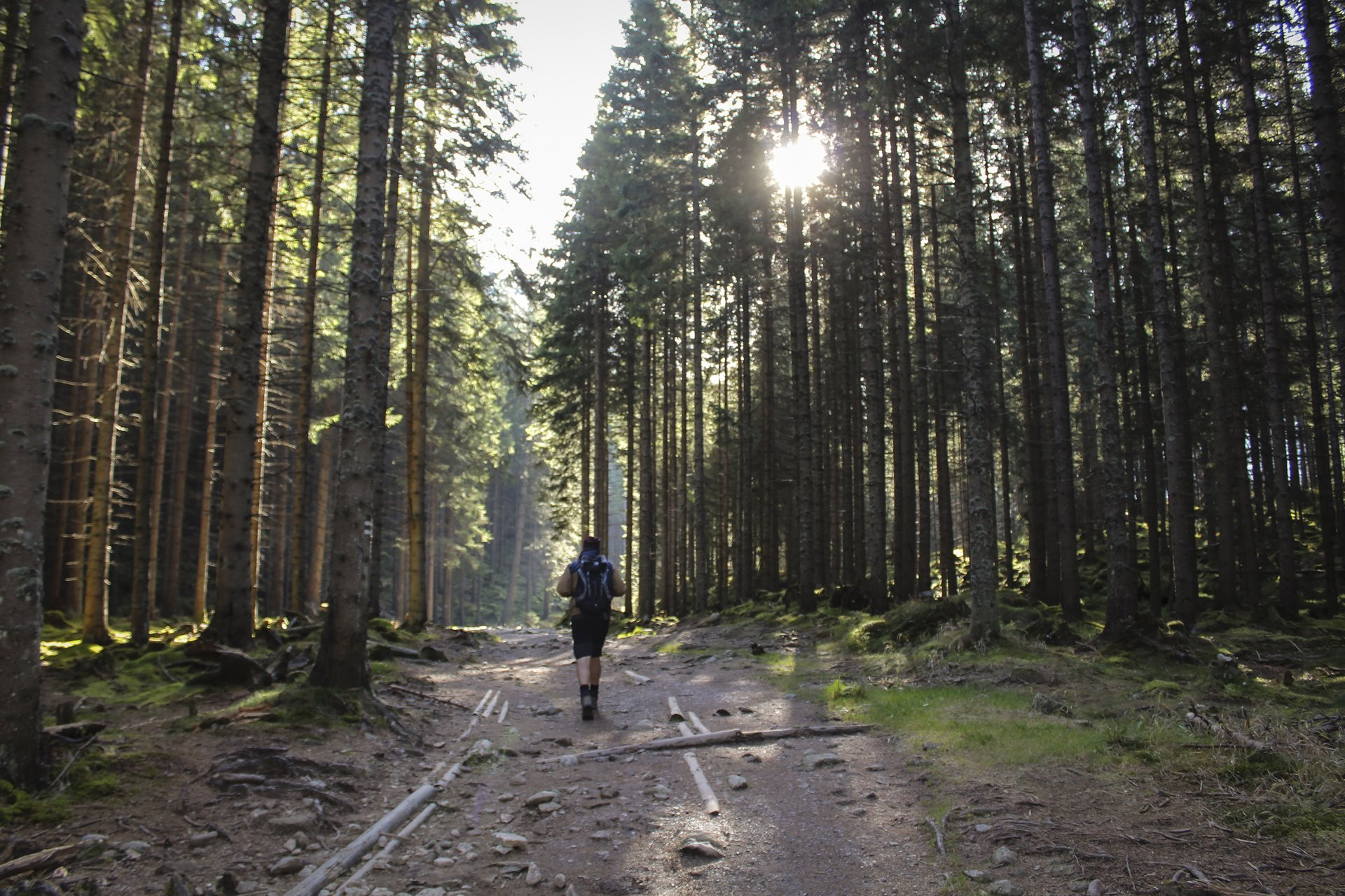 Egy fenyves erdősávján keresztül kezdődik a túra