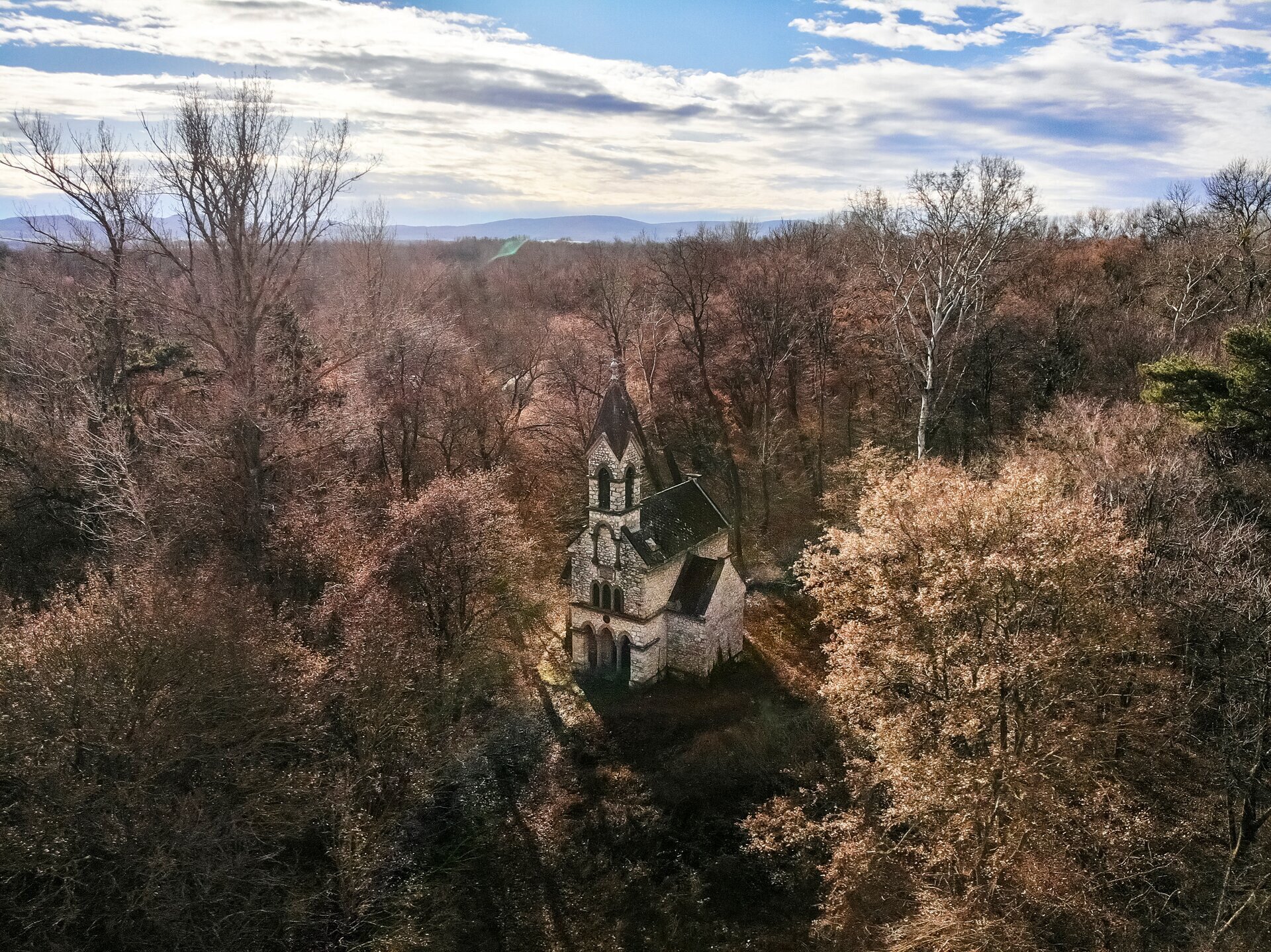 Az ajtó körül poros pókháló rezzen a szélben, a kápolnába csak kívülről tudunk belesni