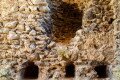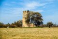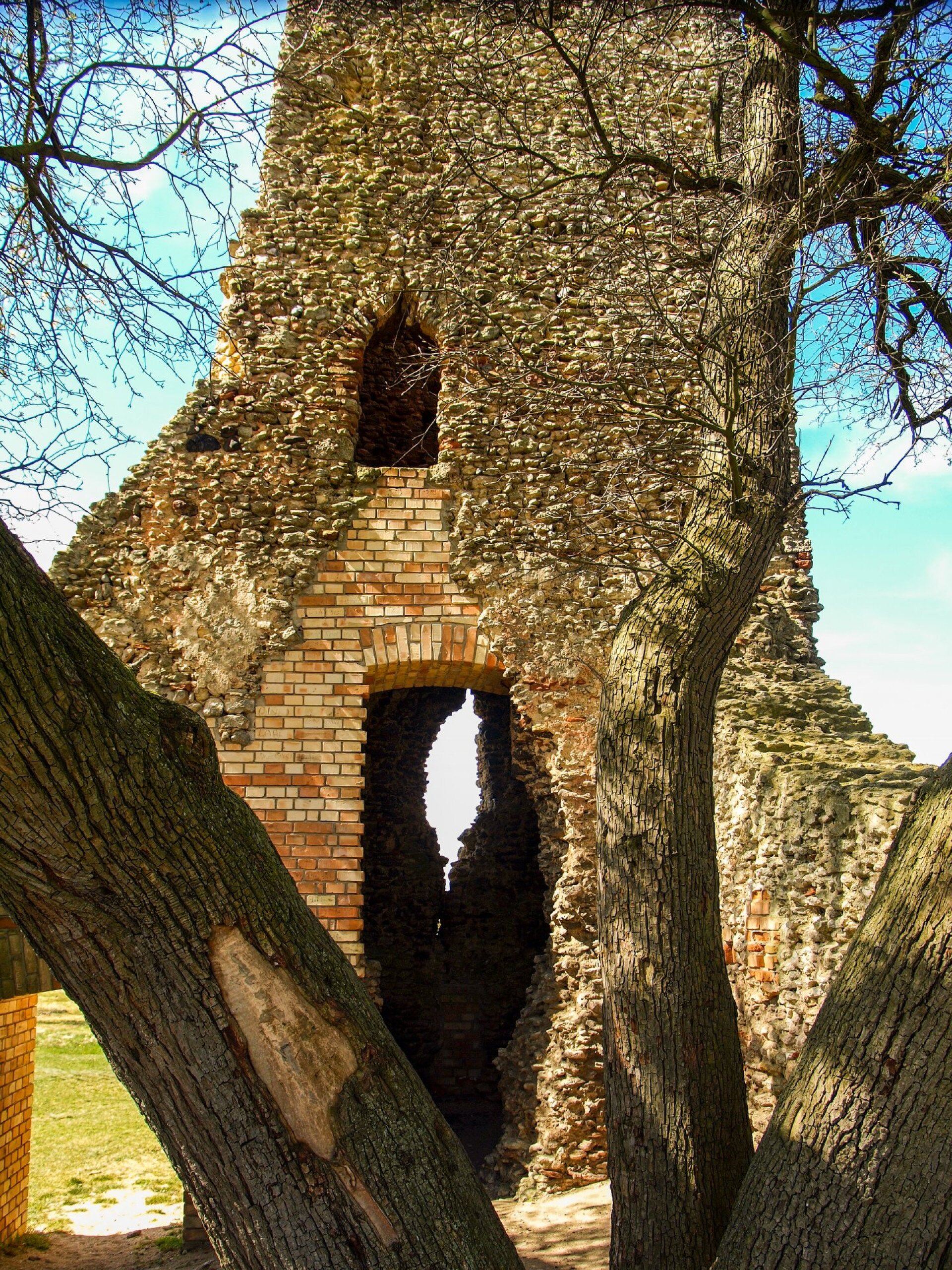 A rom hátulról, az első fa vonalában a sánc nyomaival