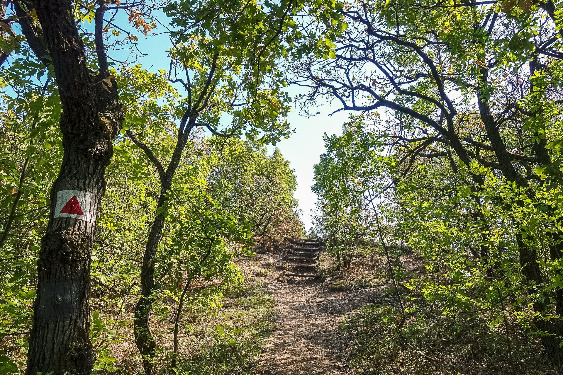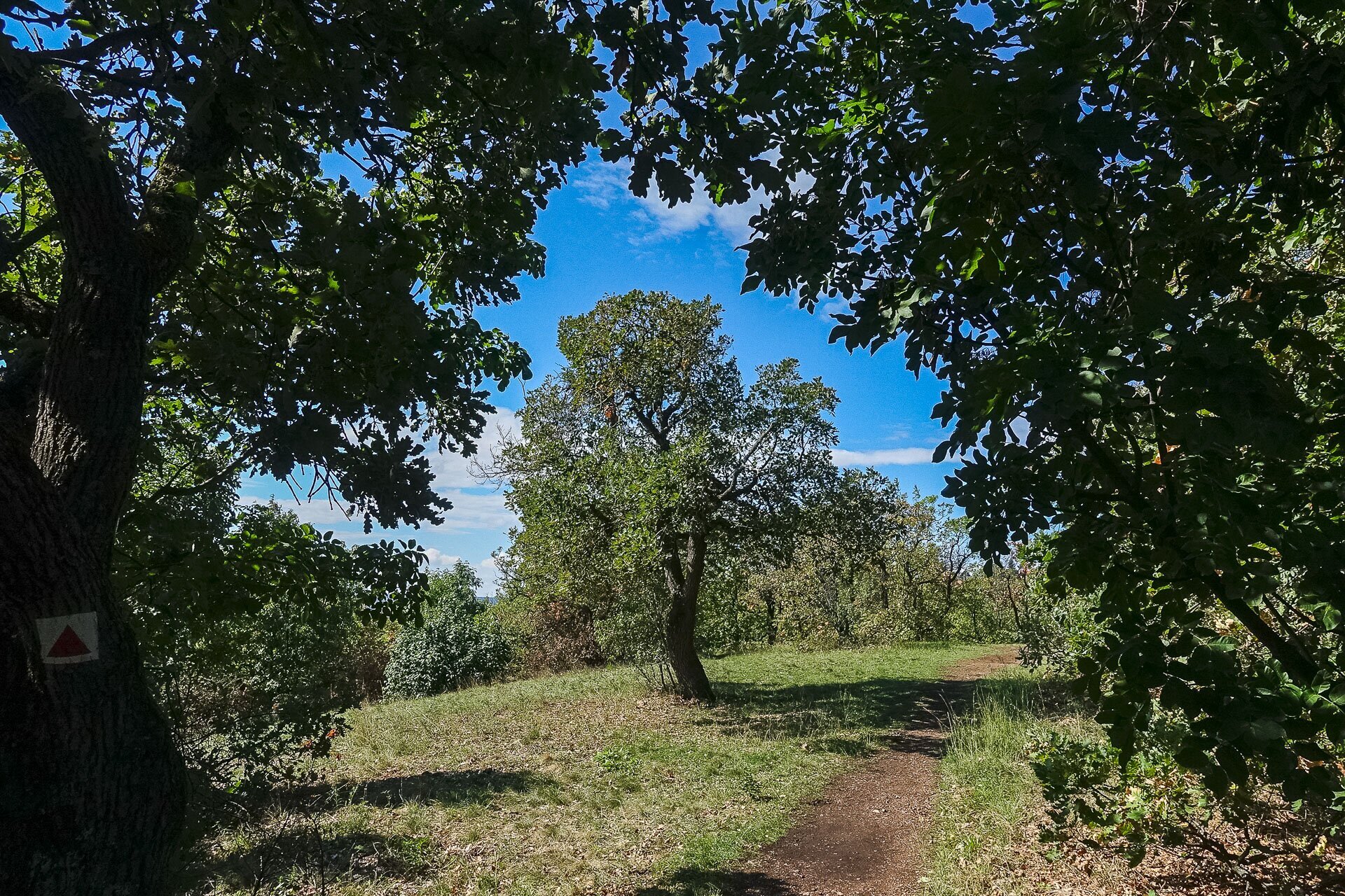 A piros négyzetről egy idő után áttérünk a piros háromszögre, ami felvisz a hegy (igazából domb) tetejére