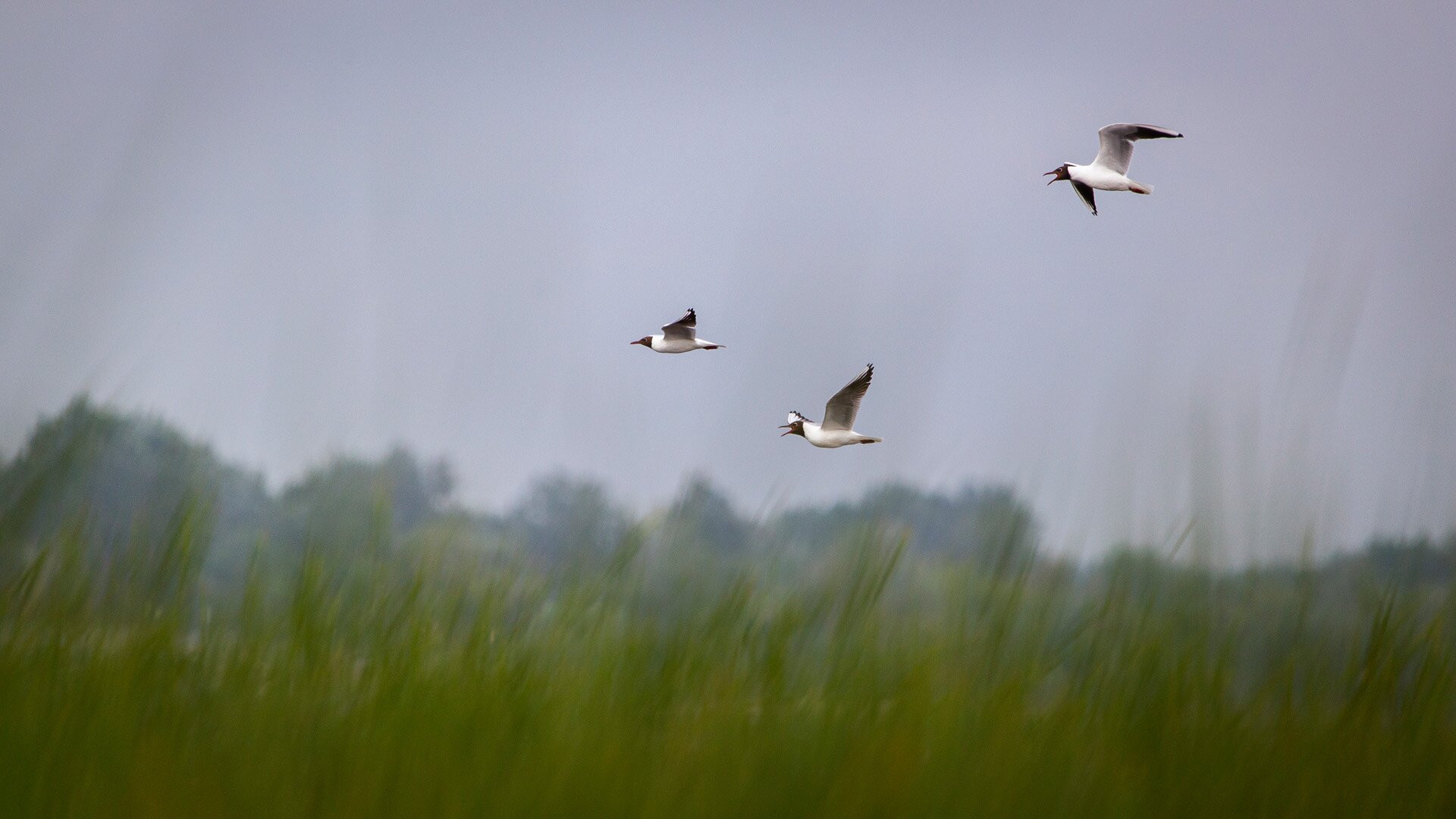 Messziről is jól látszik, hogy a dankasirályok egész fejét sötét tollazat fedi a nyári időszakban