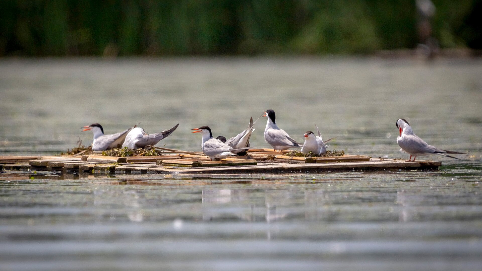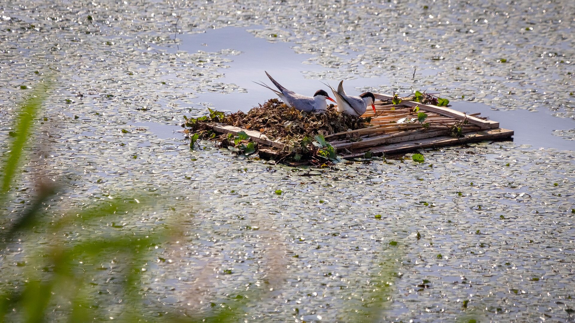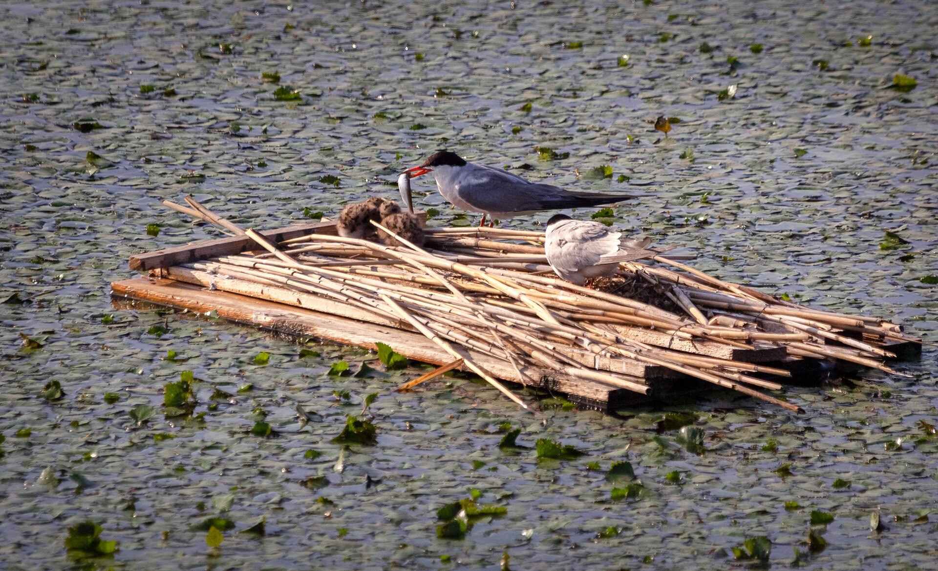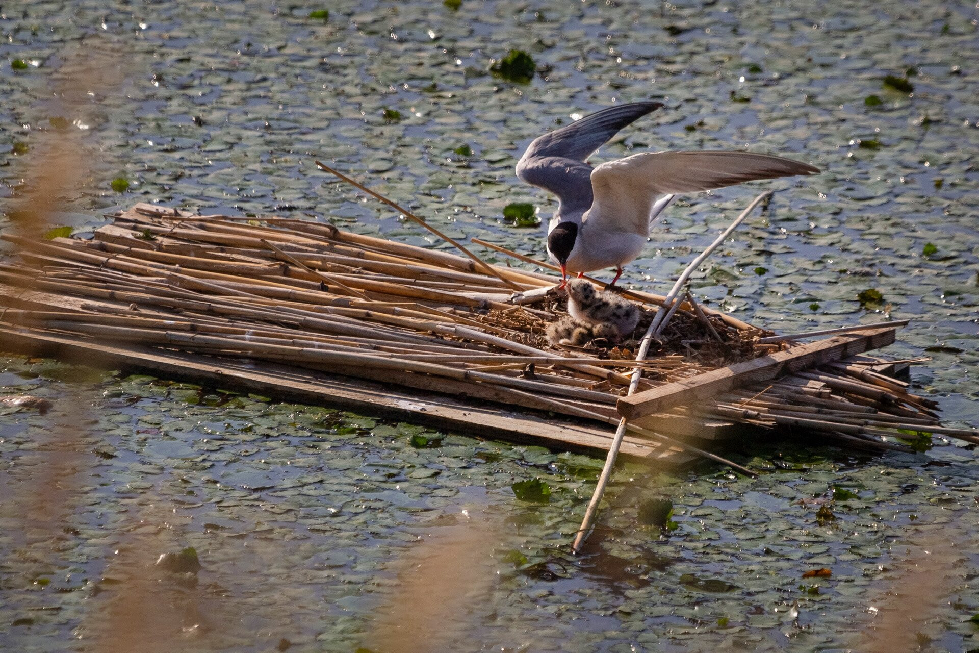 Raklapból készült mesterséges sziget, amelyen több csérpár is költeni kezdett