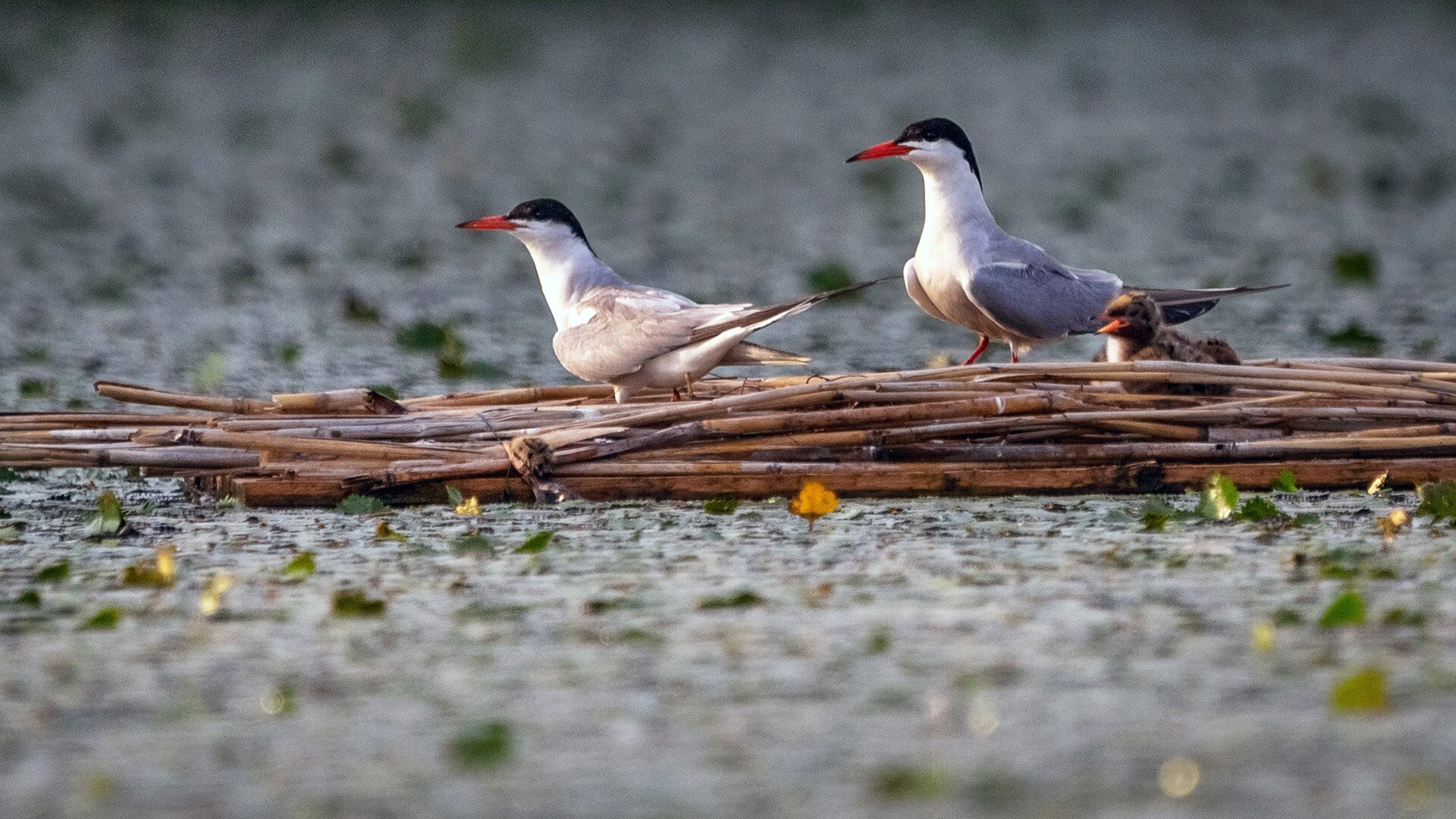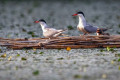 A dankasirályok ekkor már nevelgették fiókáikat (jobbra), a csérek még csak a tojásokon ültek (balra)