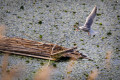 Bár itt még csak nagyon enyhe hullámzás alakult ki a széltől, jól látszik, hogy a hínárnövényzet nélkül mennyire ki van téve a fészek a hullámoknak