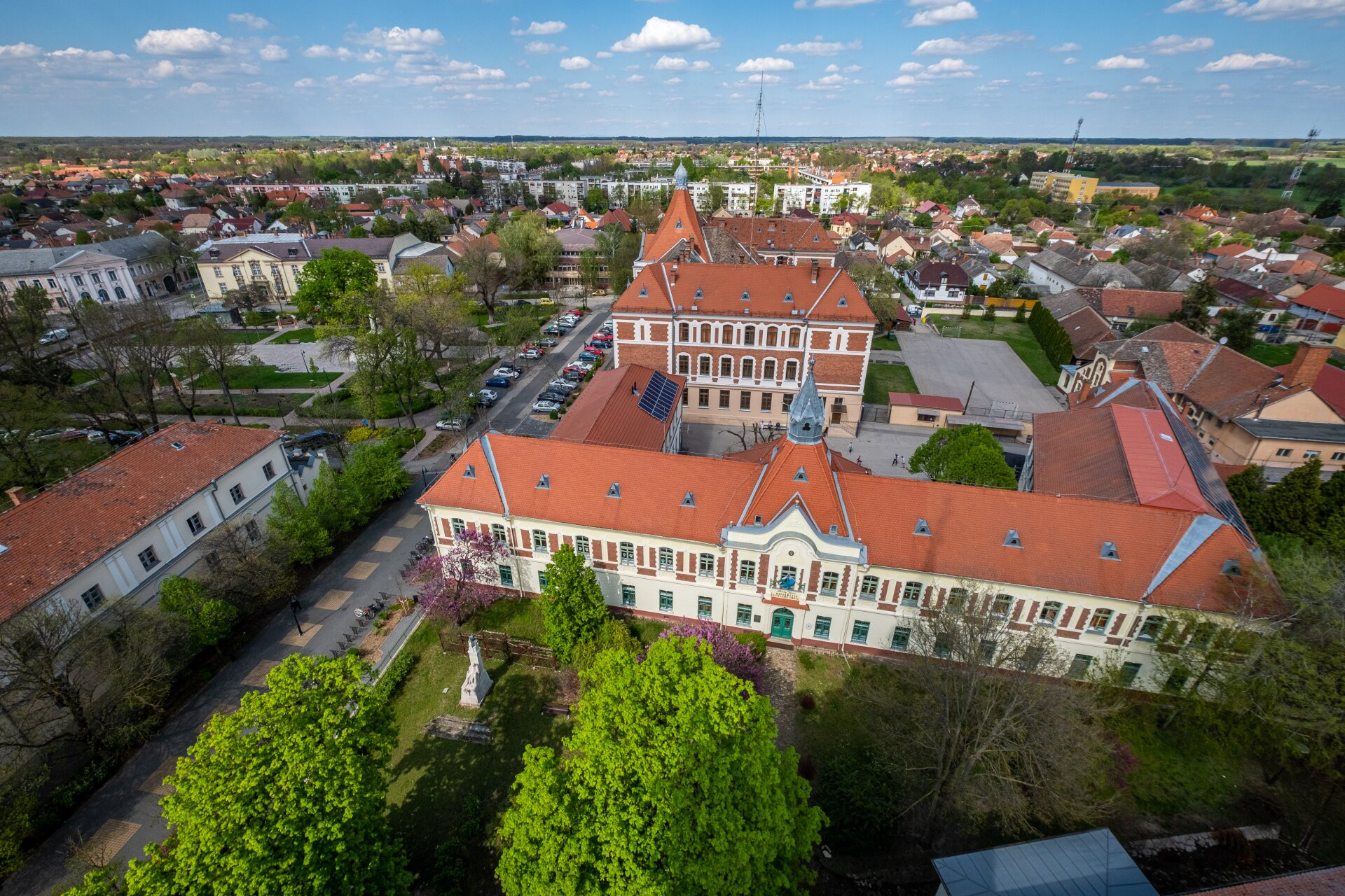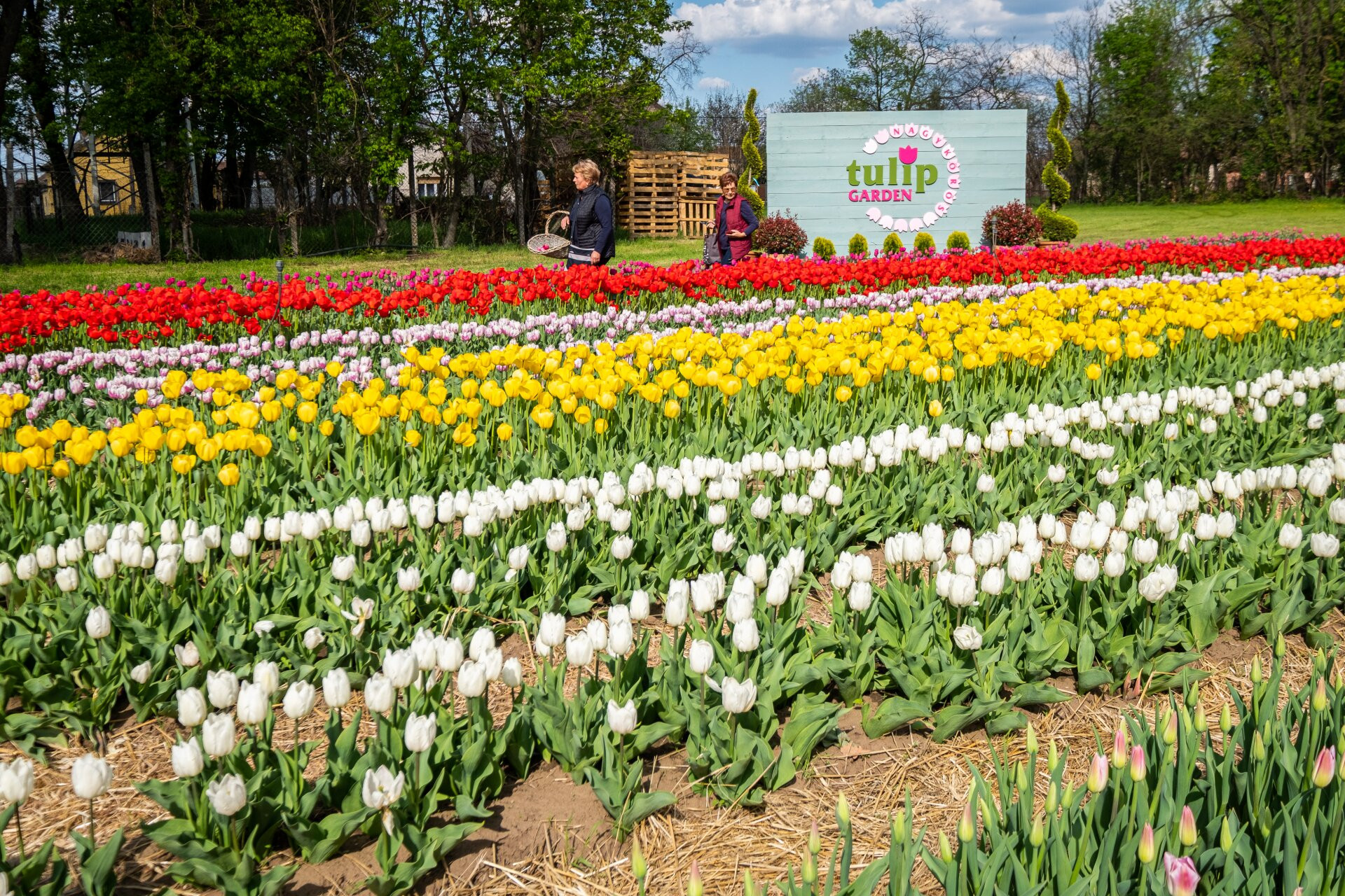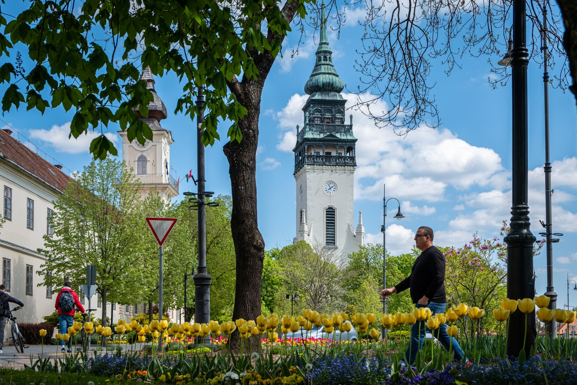 Nagykőrös Virágos Magyarország-díjat nyert főtere ebben az időszakban különösen szép, a sok zöldfelület közt ilyenkor tulipántengerben úszik.