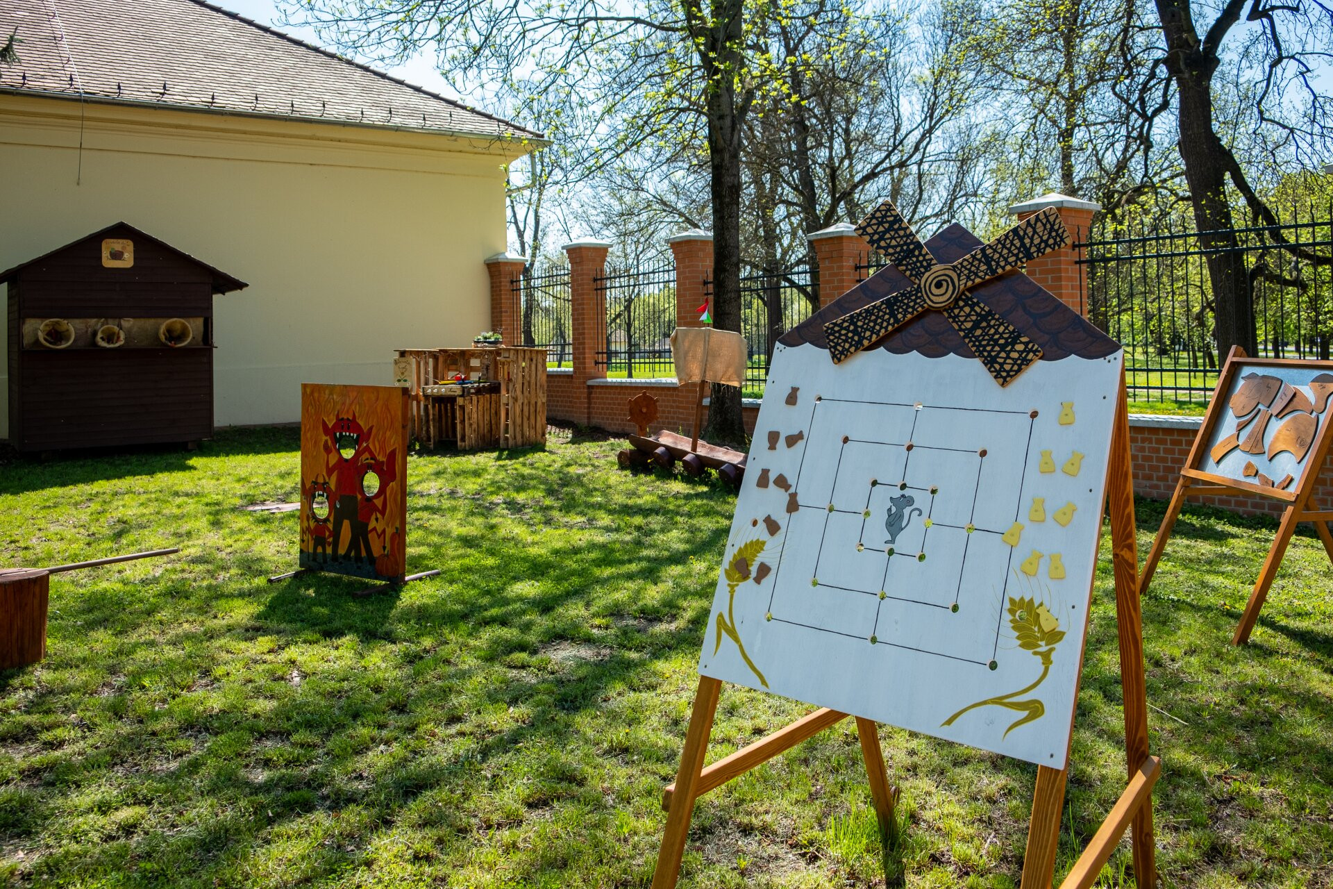 A múzeum kertjében fantasztikus népi játszóteret találunk, ahol még a felnőttekből is előtör a játszhatnék. Célbadobó-játék, haj- és szakállfonó, szalma ugrálóvár, lovagi torna és egyéb, szórakoztató elemek várják a gyerekeket.