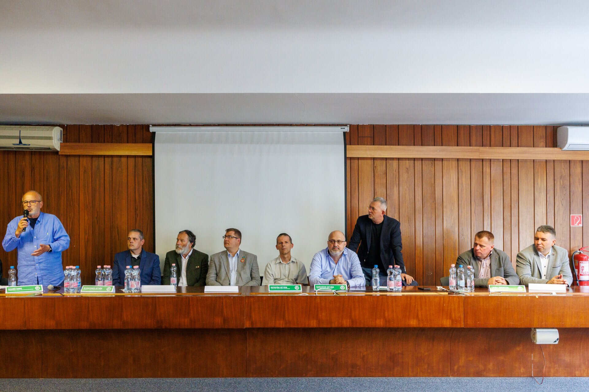 Az MTSZ újonnan megválasztott elnöksége (b-j): Ripszám István, Tömördy Szabolcs, Szabó Imre (Ellenőrző Testület elnöke), Dr. Seregi János, Nagy János, Garancsi István, Dr. Rosztóczy András, Csiba Ágoston és Klenczner István