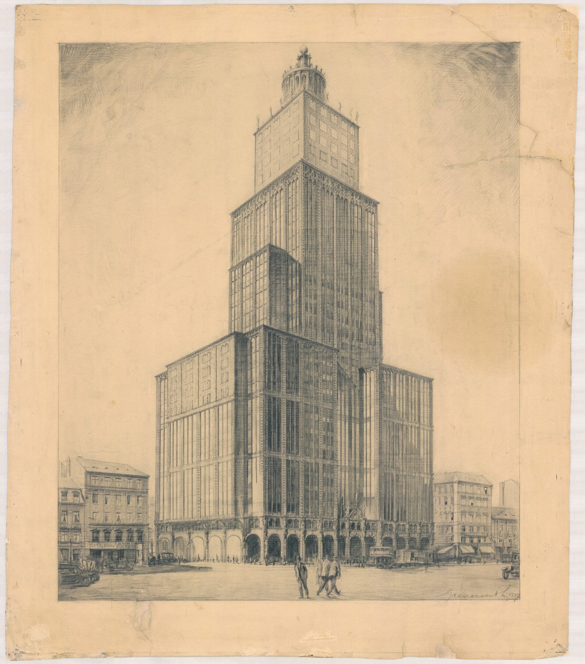 Gregersen Hugó (1889-1975): Felhőkarcoló terve az Anker-palota mellé, 1927. MÉM MDK Múzeumi Osztály, 74.045