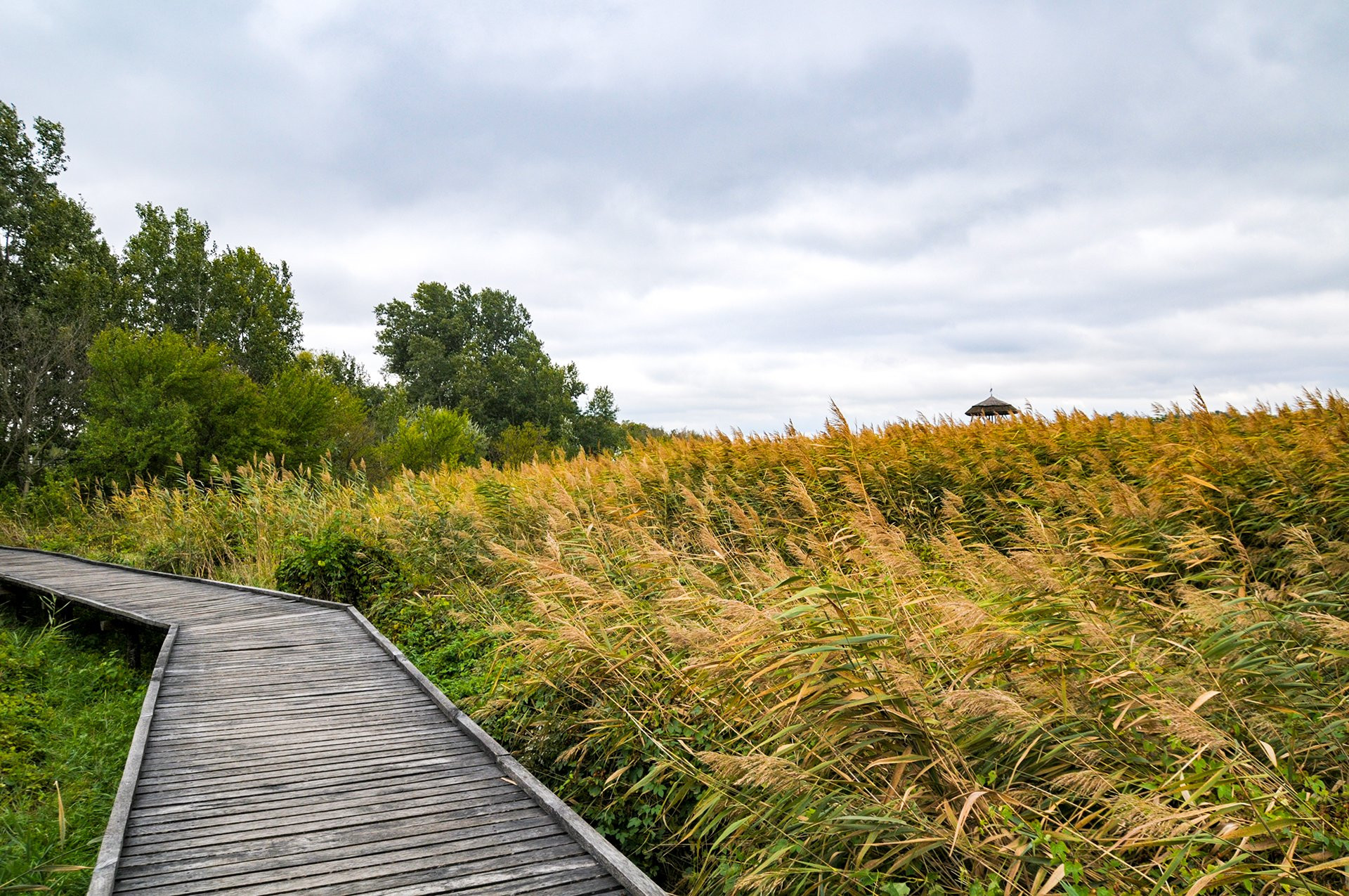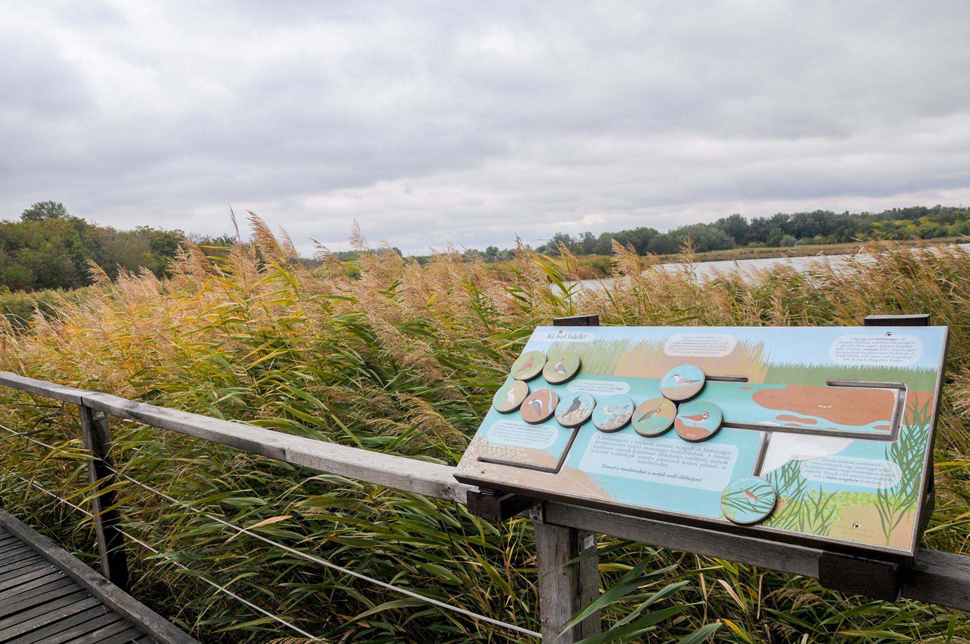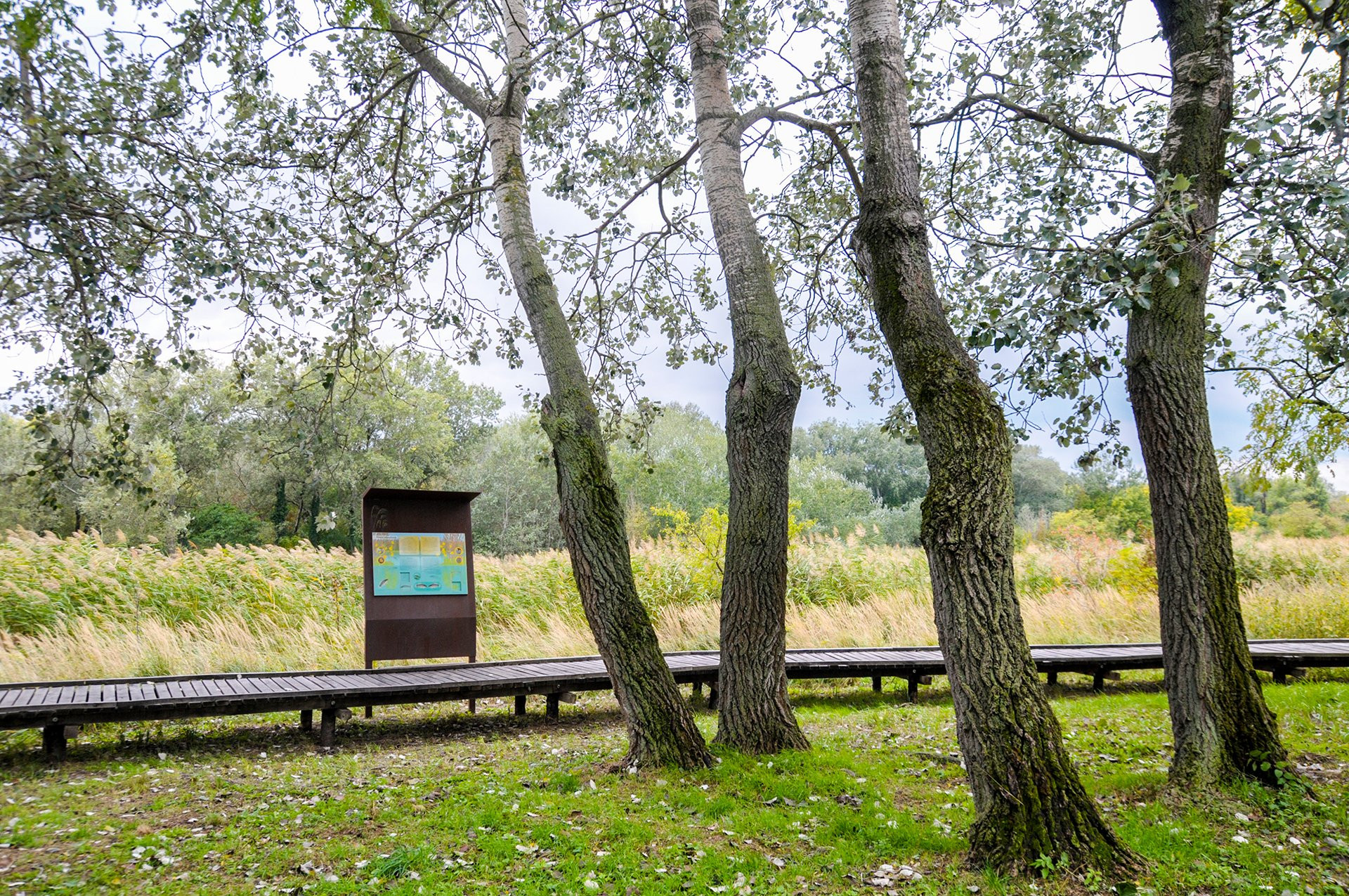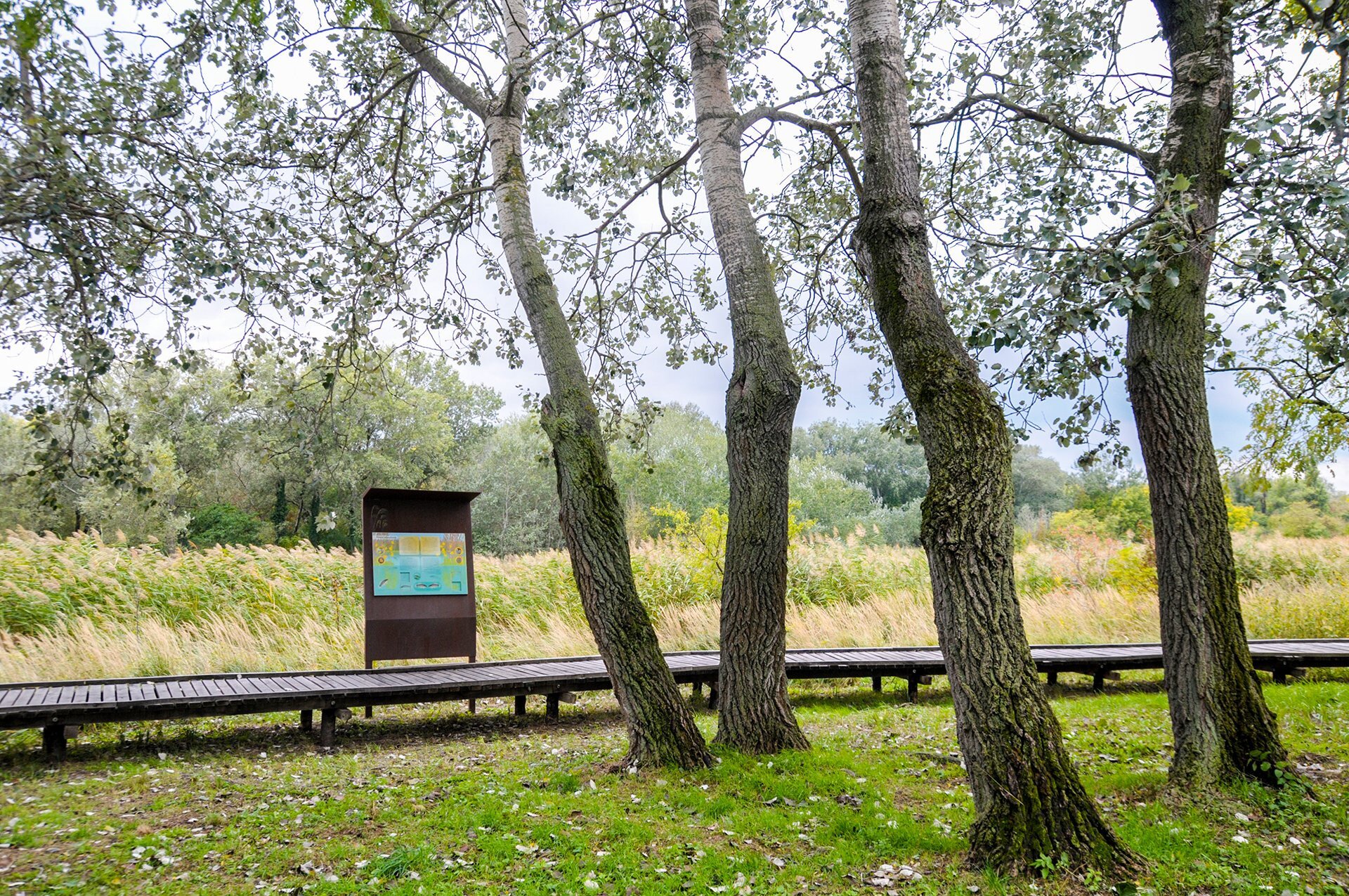 A tanösvény egyik állomása, a Nádi berek, ahol gyönyörű fehér nyarak állnak