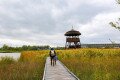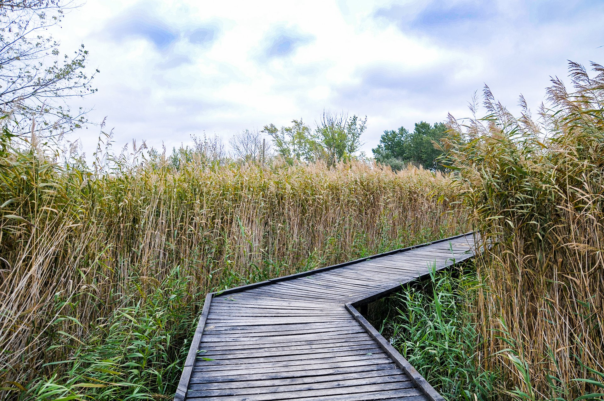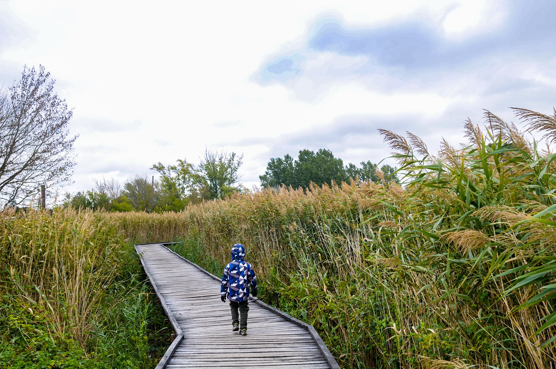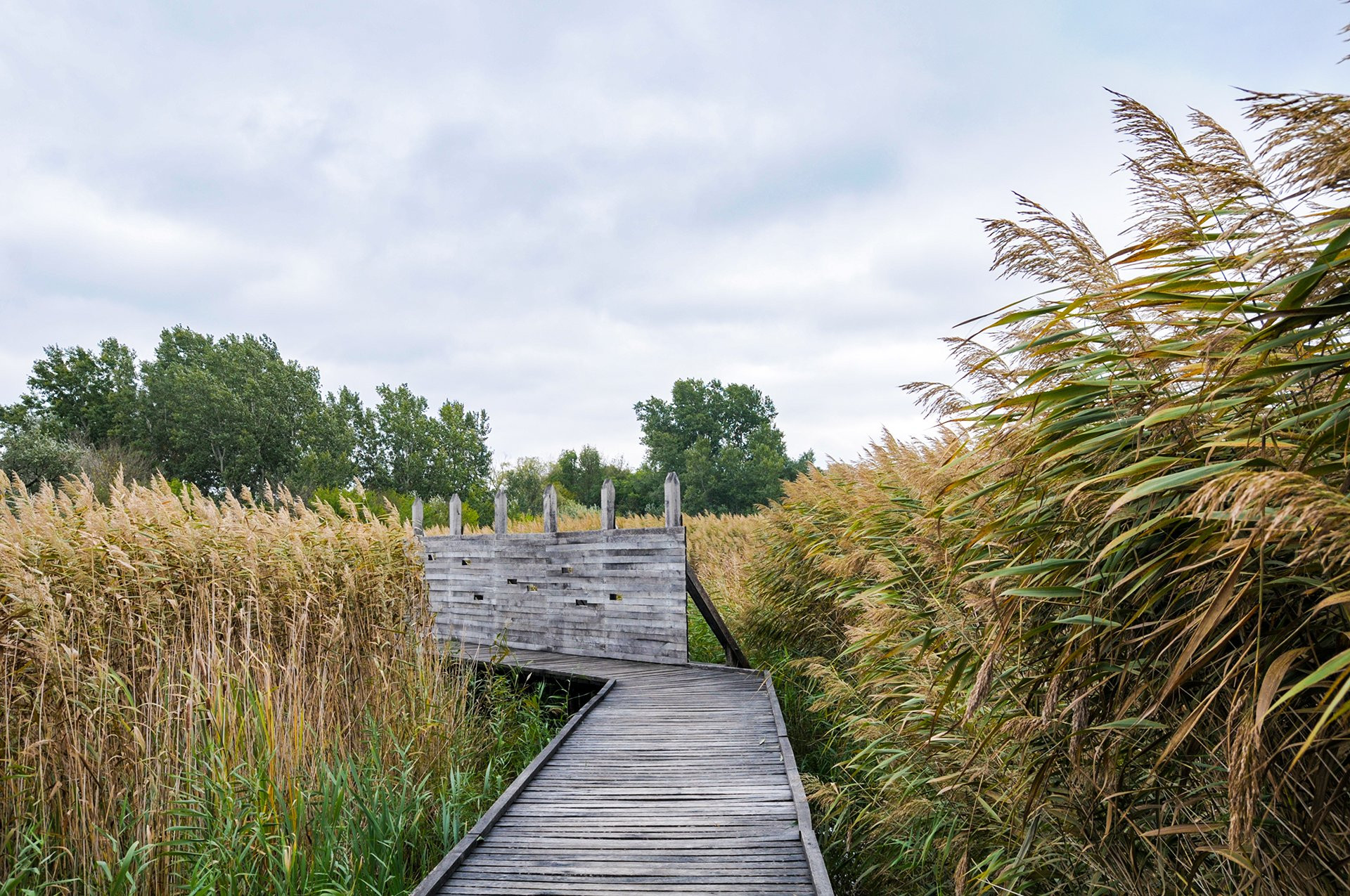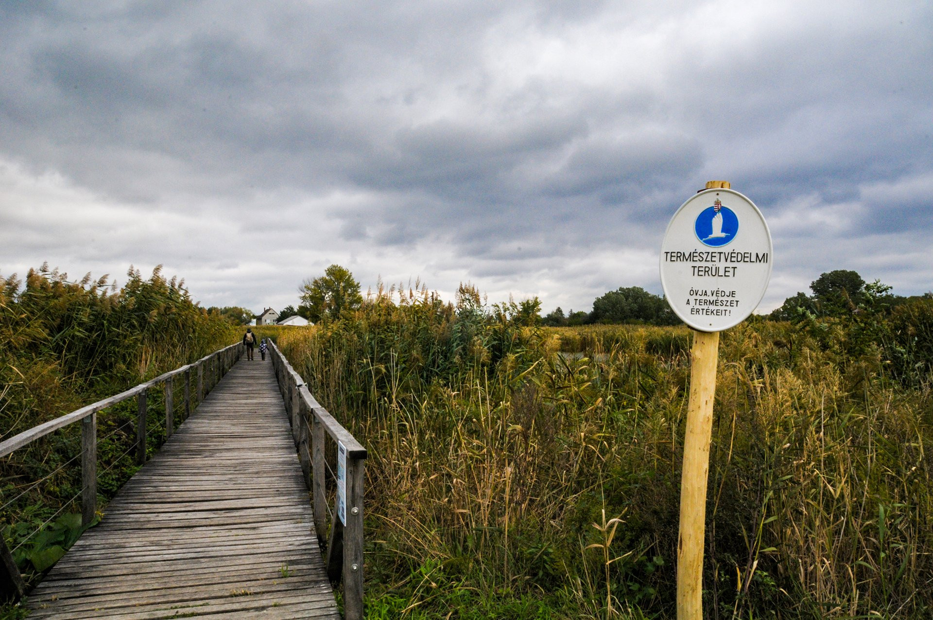 A tanösvény egyik állomása, a Nádi berek, ahol gyönyörű fehér nyarak állnak
