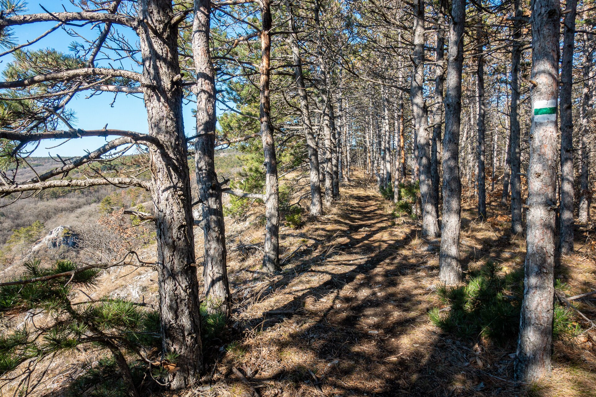Fenyvesek és bokrosok váltakozásában haladunk a horgok irányába
