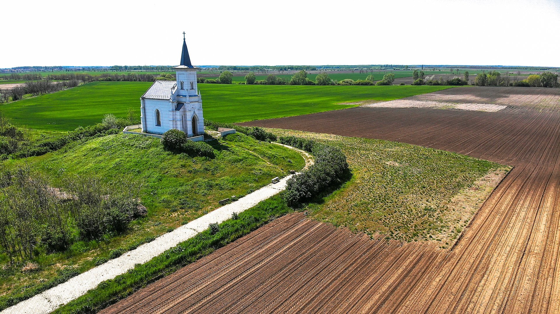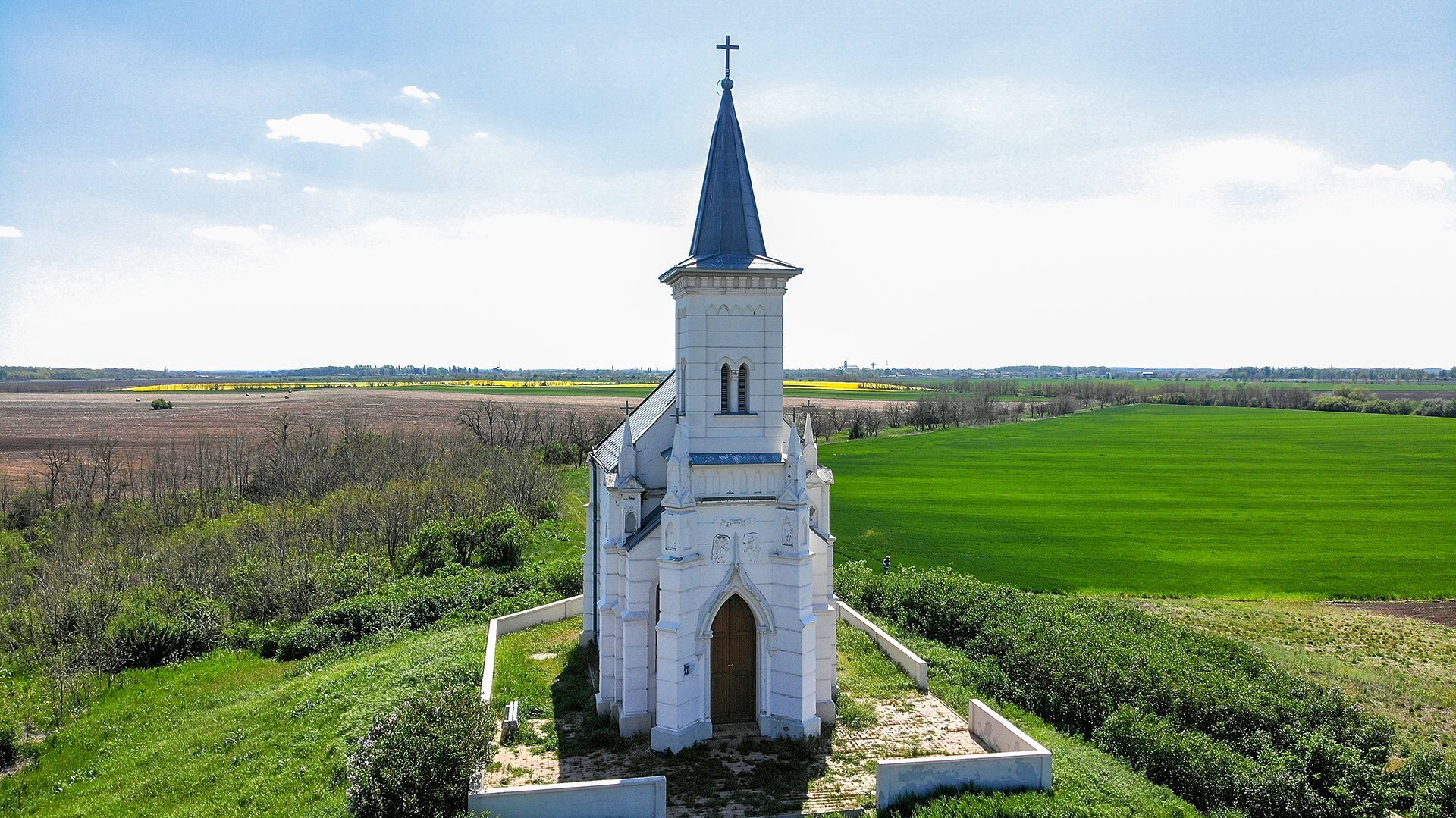 A neogótikus Szent Móric-kápolna Kunhegyes határában egy kunhalmon áll