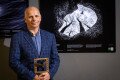 Őrsi Ákos "Koordináta-rendszer" című kategóriagyőztes fotója előtt