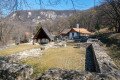Klastrompuszta, előtérben a pálos kolostor romjai, háttérben a Kémény-szikla is látszik