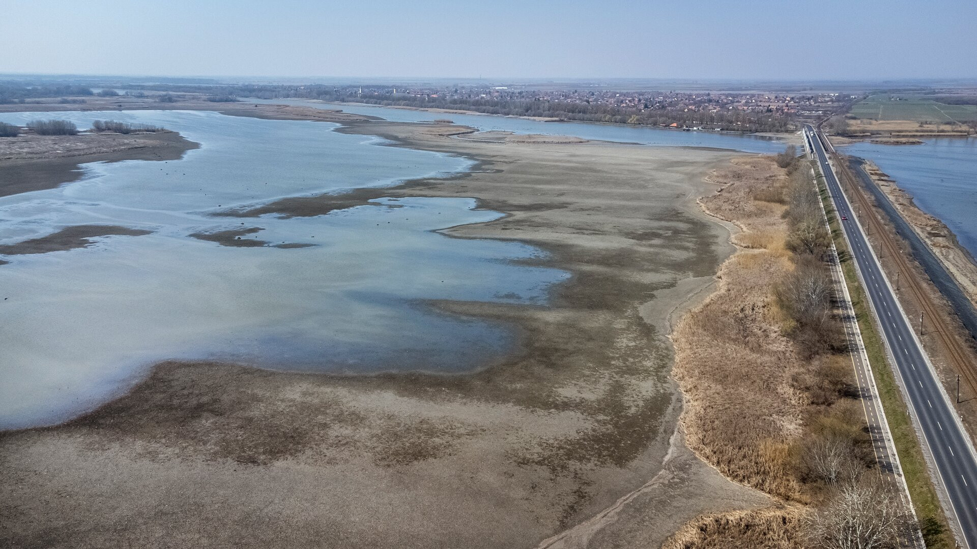 Szárazra került csónakok egy tiszaörvényi kikötőben