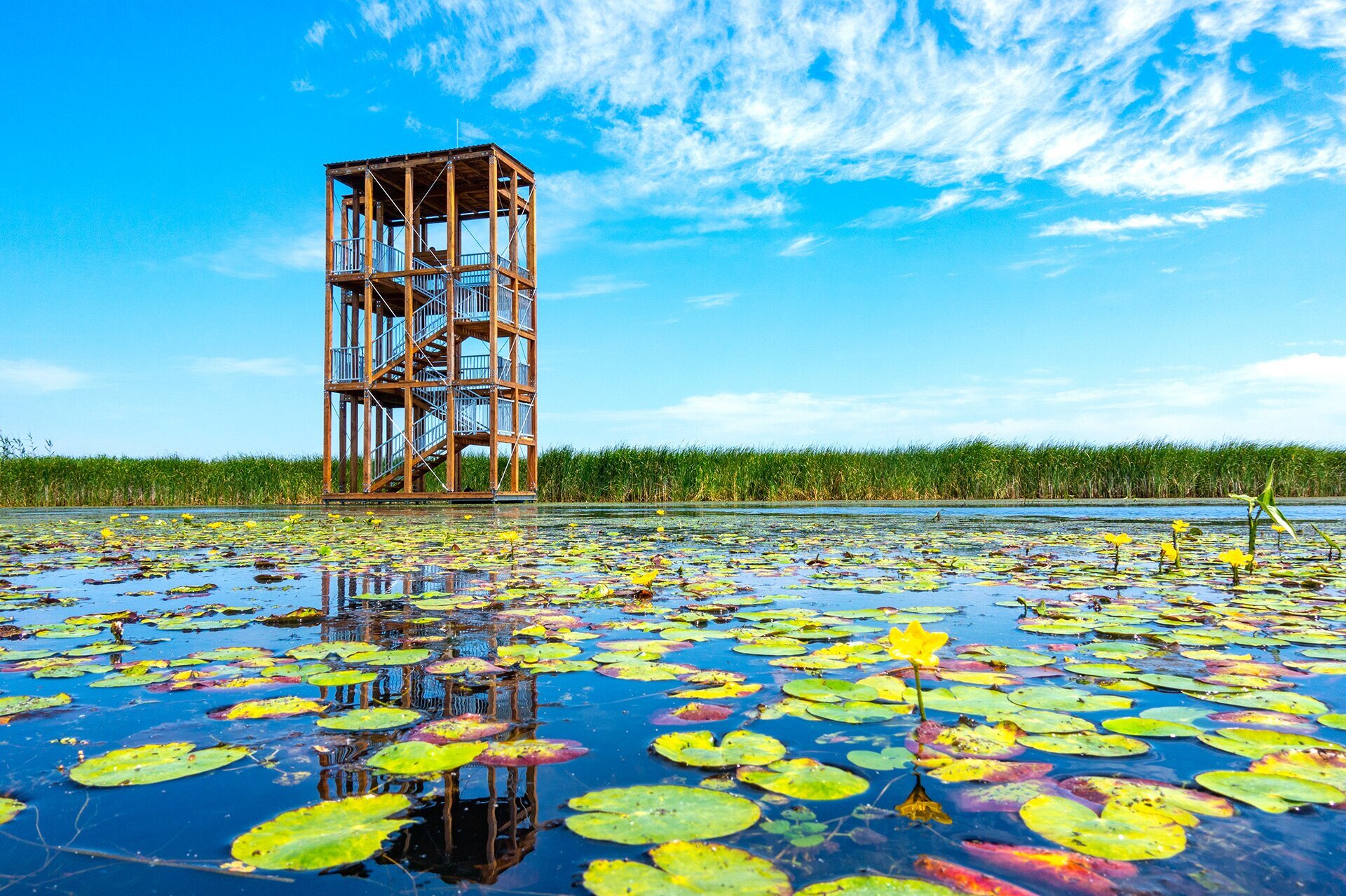 Valószínű, a tervezők is érezték a távolságot, ezért pénzbedobós távcsővel kedveskedtek azoknak, akik közelebbről is megszemlélnék a környéket a magasból. A Tisza-tavi Vízi Sétány nádasait és madárvártáit viszont távcső nélkül is jól láthatjuk.
