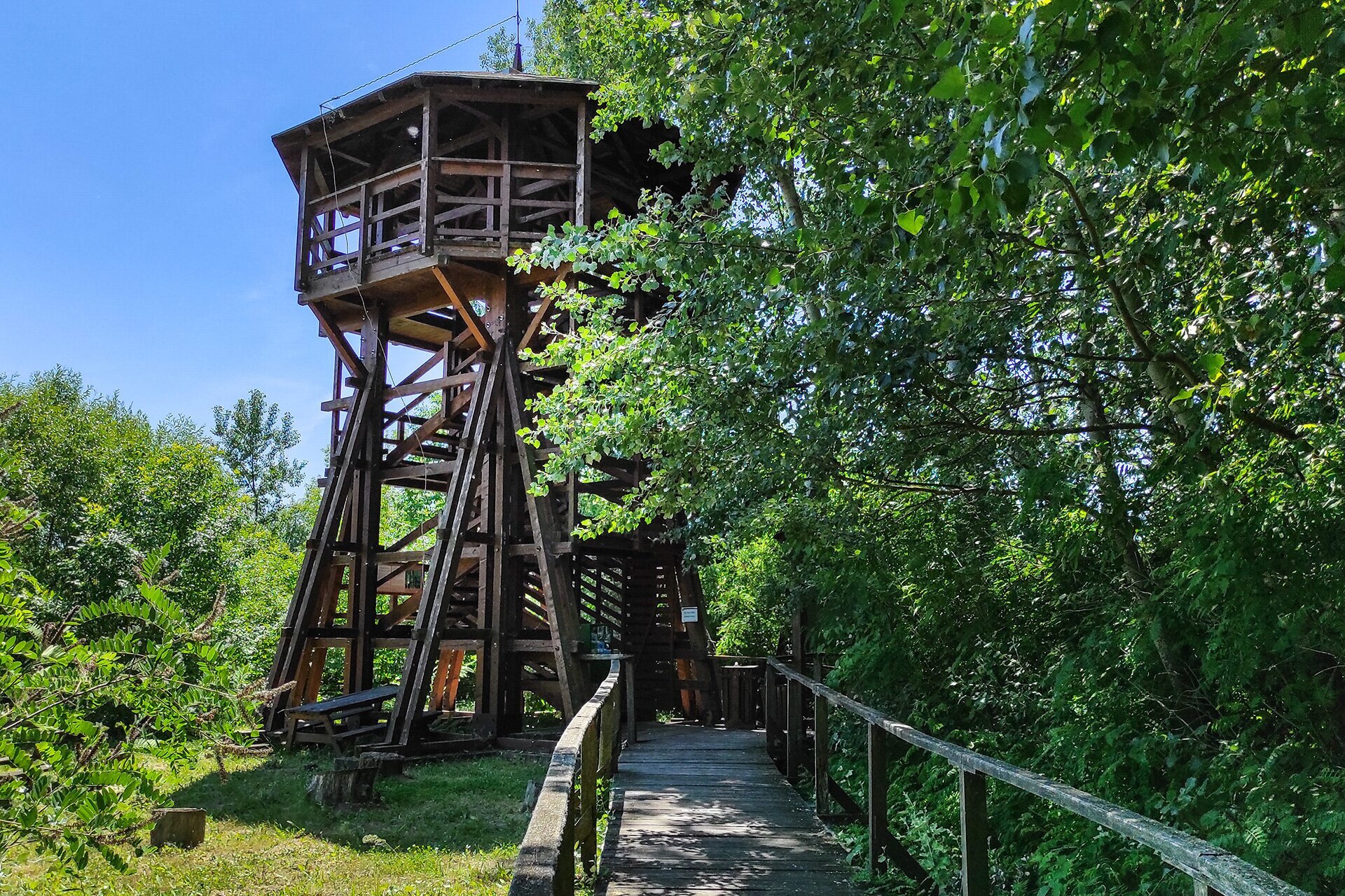 A kilátóból az egyik oldalon a Poroszlói-medencét, a másik oldalon a Sarudi-medencét is láthatjuk.