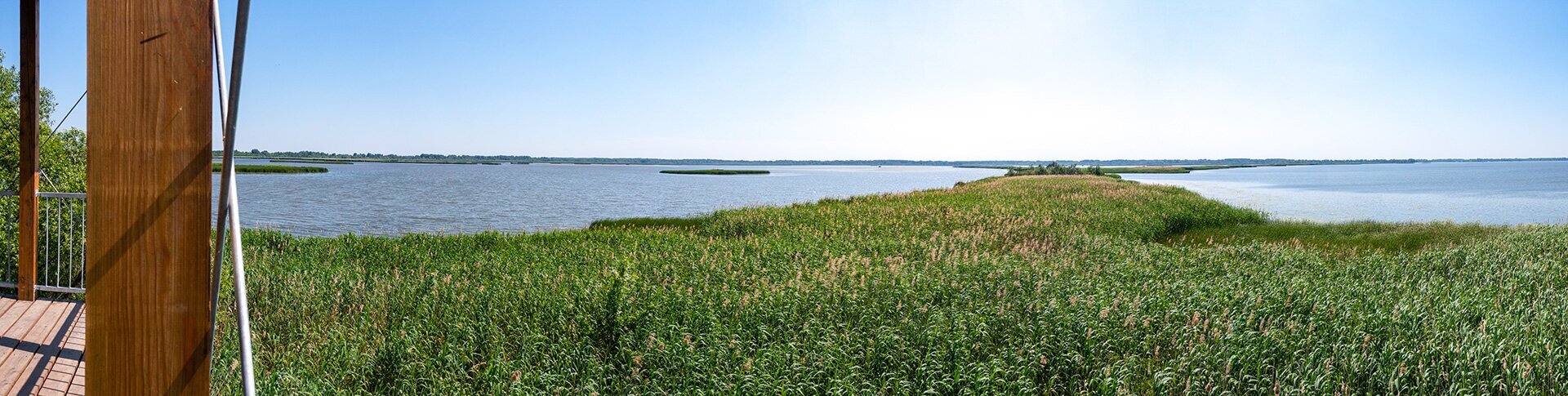 A torony tetejéből körbenézve a földnyelv folytatásában egy széles sáv nádasra, két oldalán pedig a Poroszlói-medence hatalmas vízfelületére láthatunk rá.