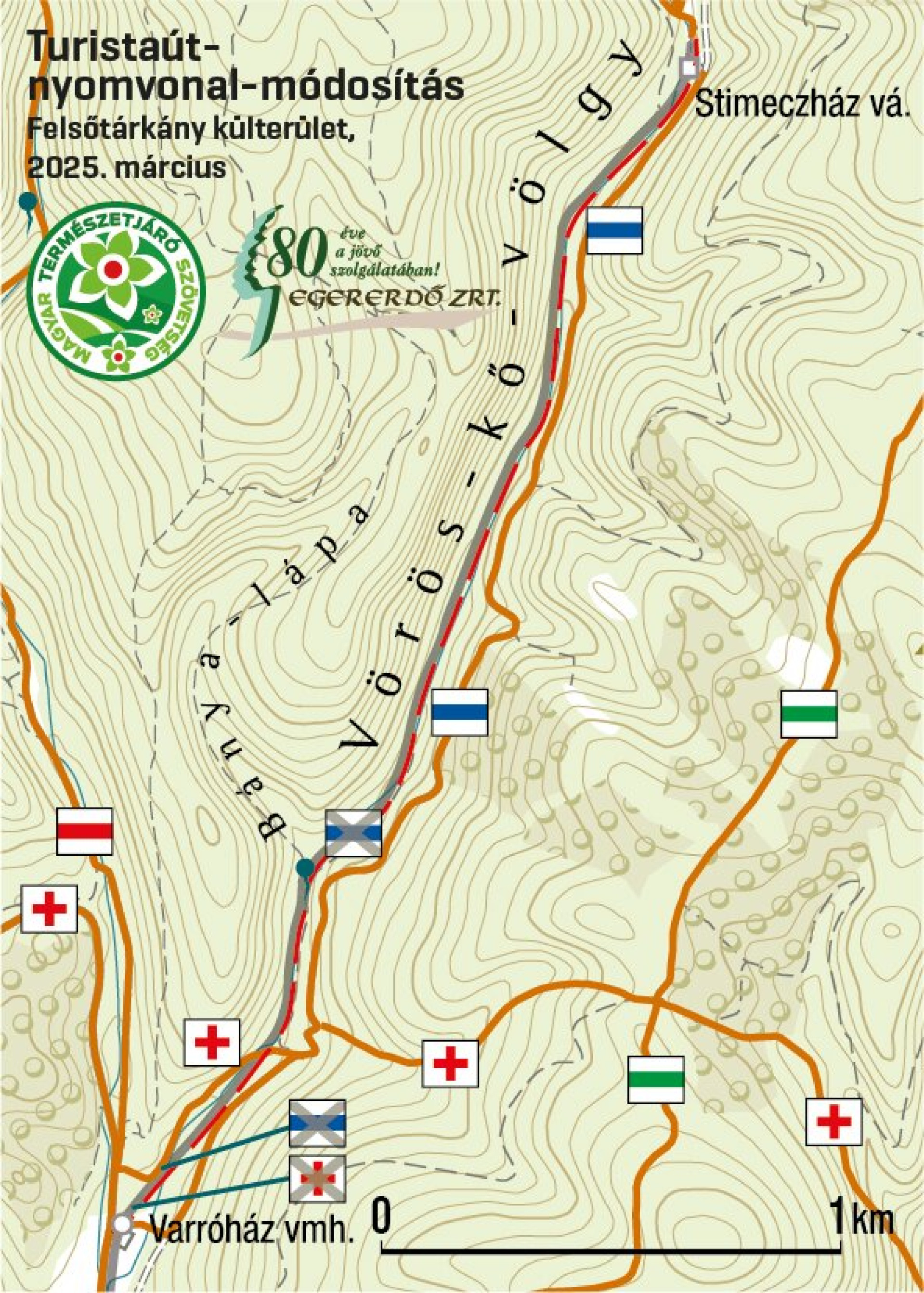 A piros kereszt jelzésének változása Felsőtárkány környékén