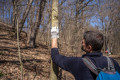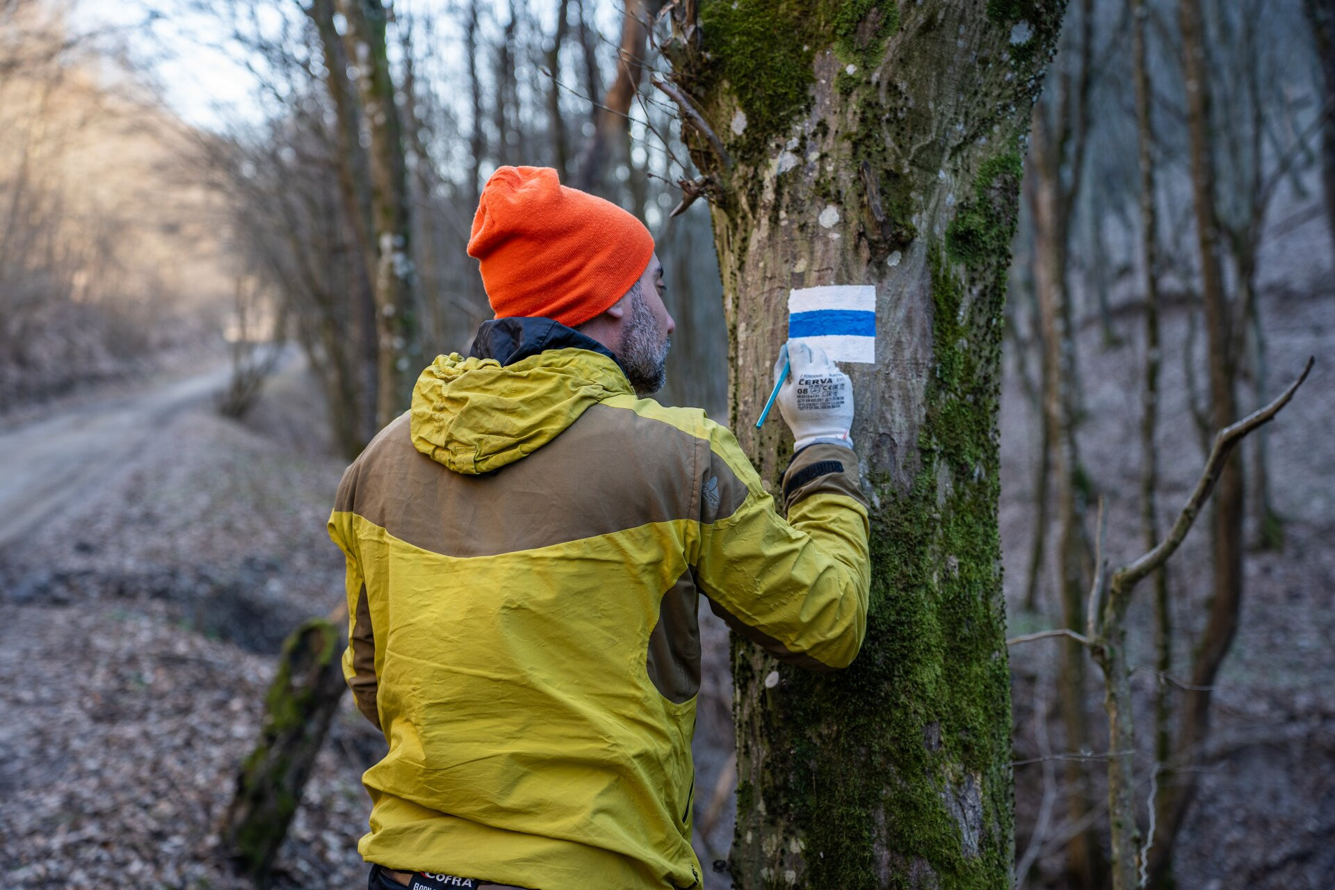 Apró javítások jelzésfestés után (a Bükki Kék kék sáv jelzése Felsőtárkány környékén)