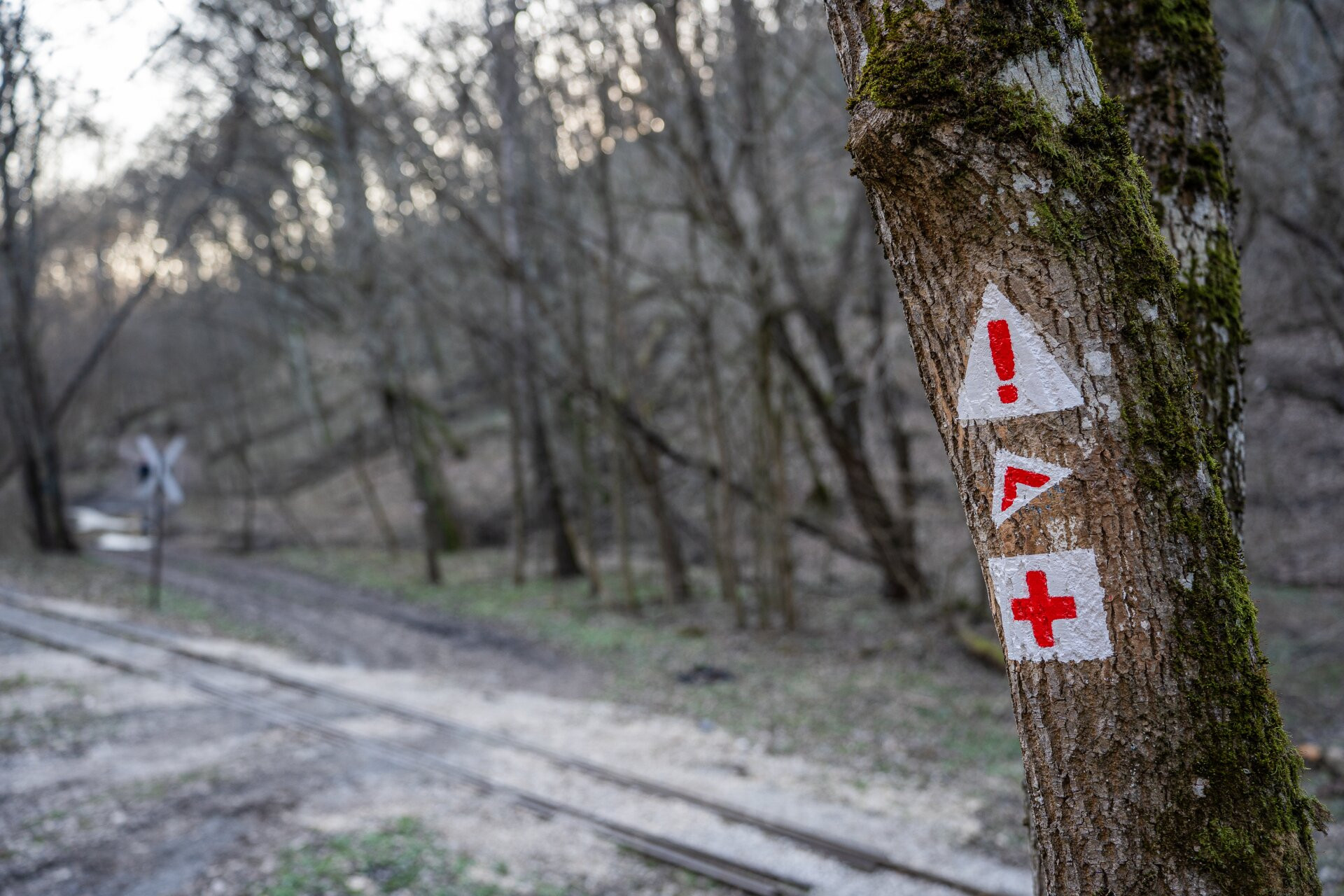 A piros kereszt jelzés egy helyen keresztezi a kisvasutat - így készül a jelzés