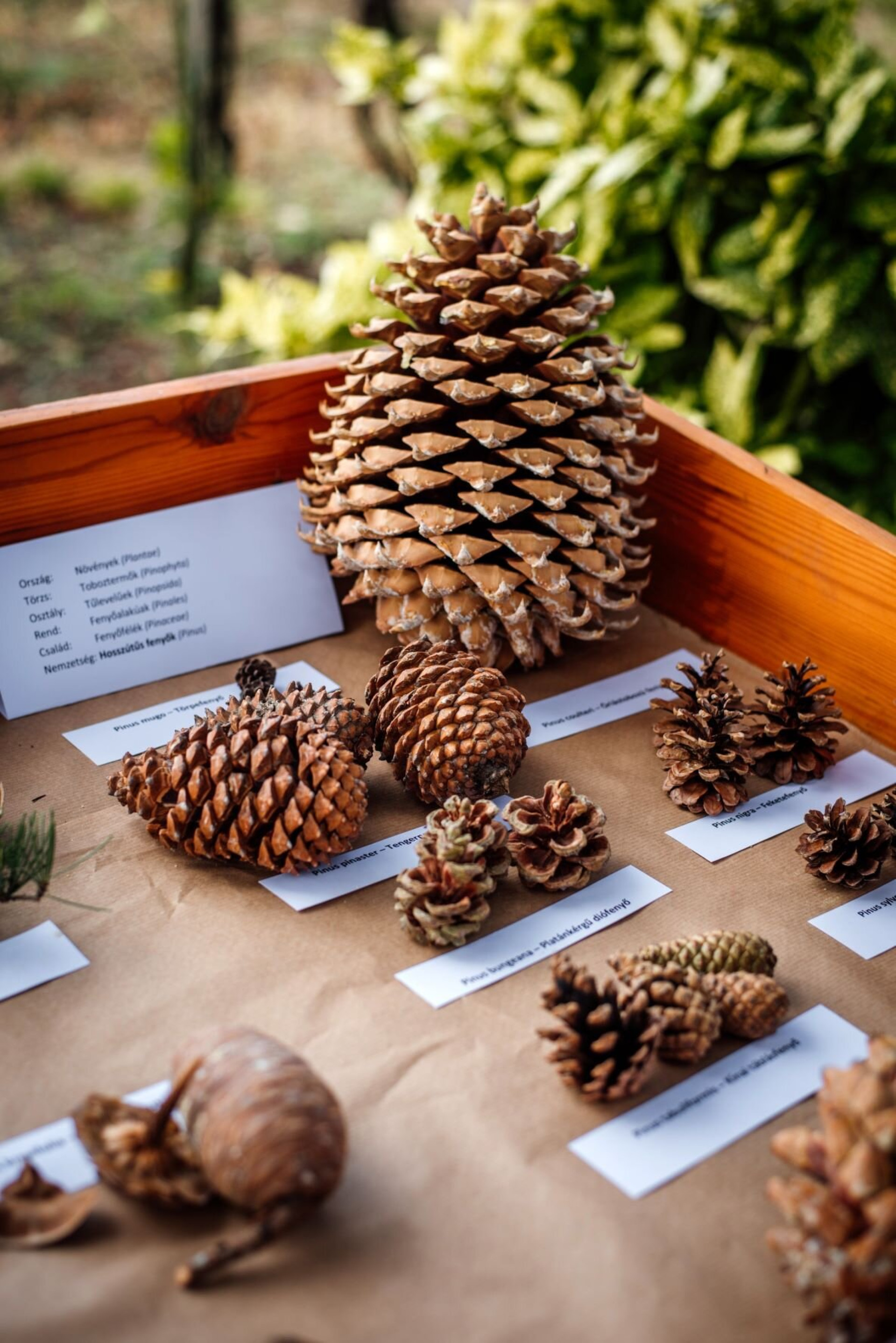 A szüret napján erdei fenyő, feketefenyő, himalájai selyemfenyő, mexikói selyemfenyő és ciprus tobozok közül választhattak a vendégek