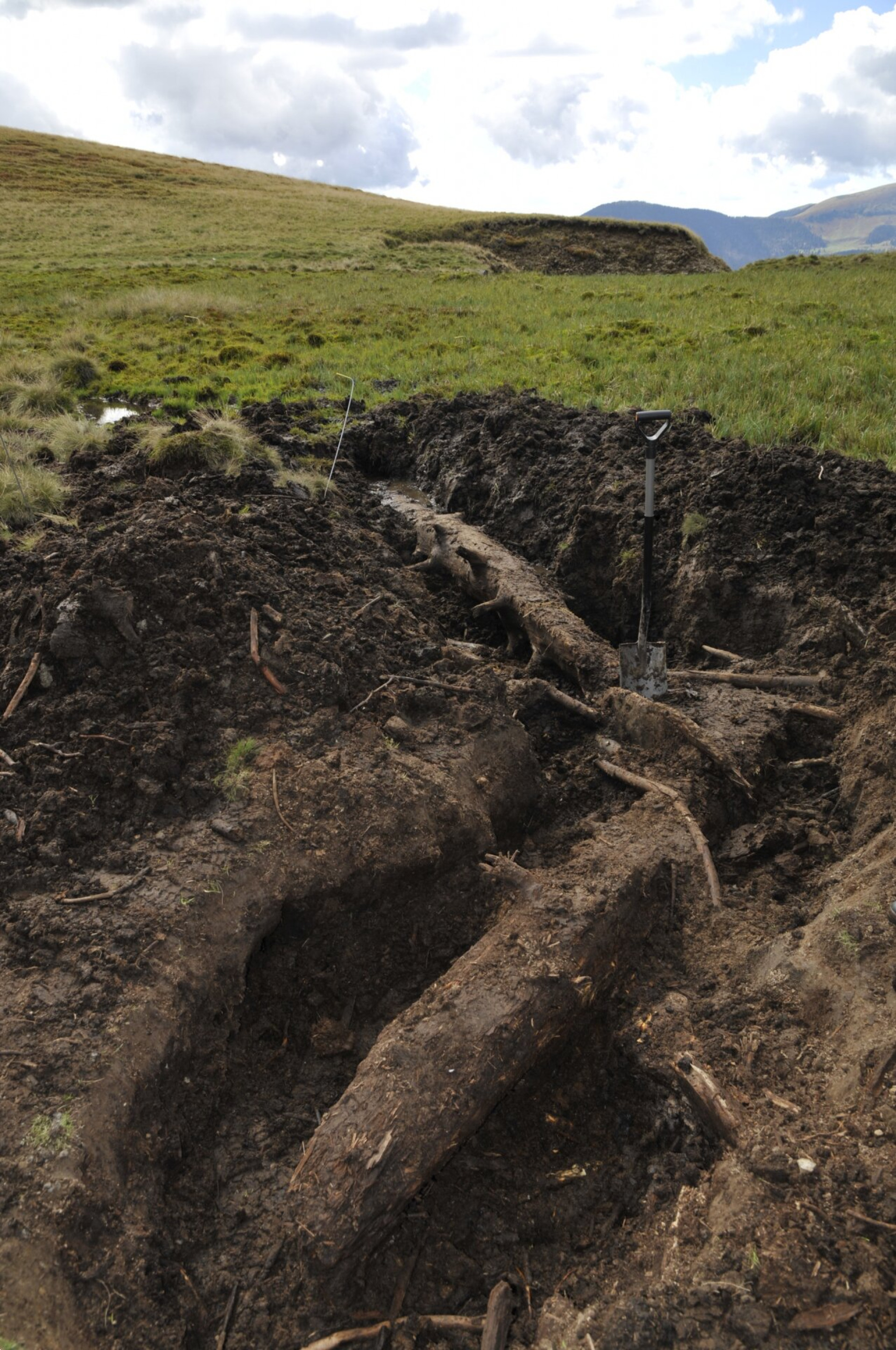 A szubfosszilis fák különböző helyeken csapdázódnak, itt például egy hegyi tőzeglápban