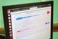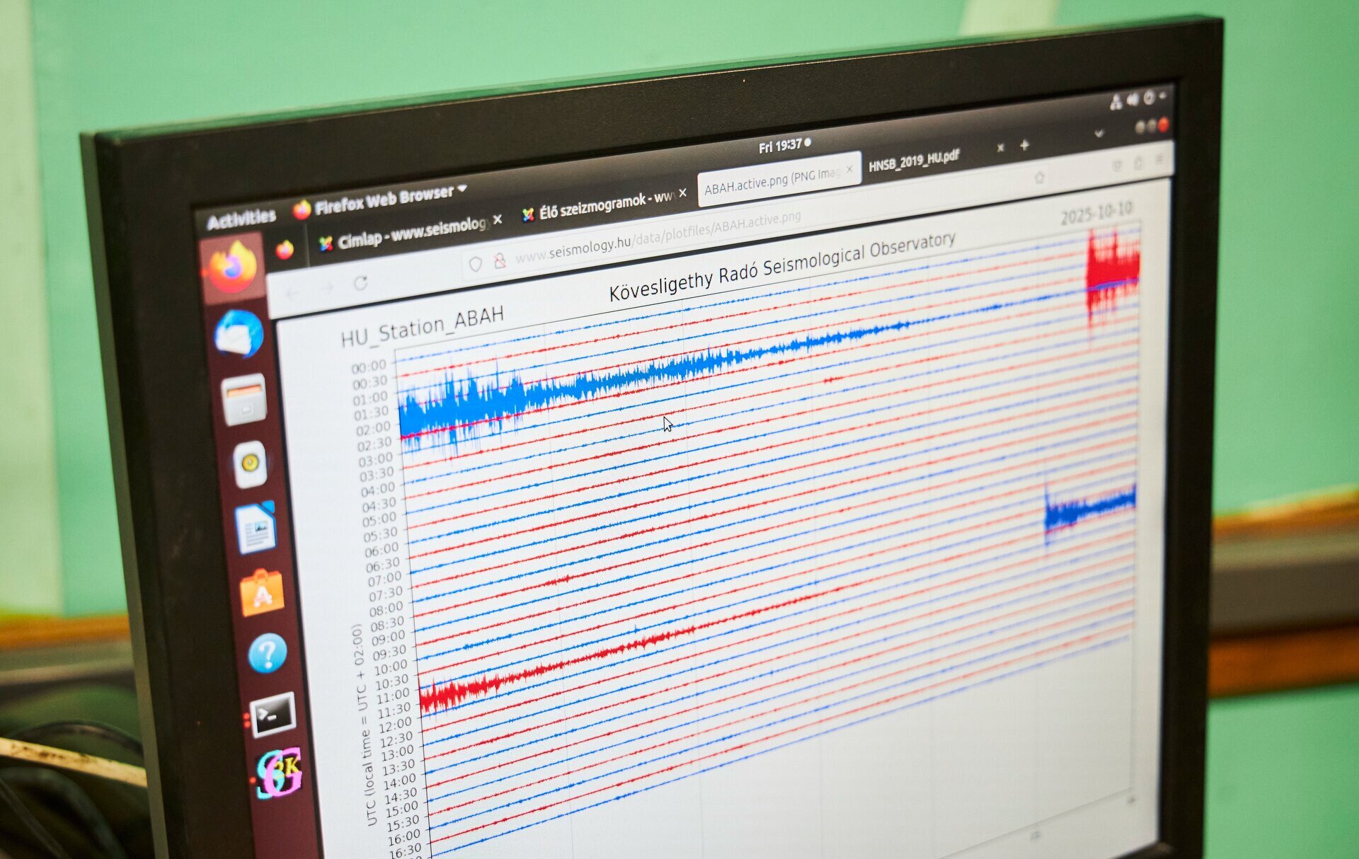 A monitor mutatja, amit a szeizmográf érzékel, 10 perces időablakokban