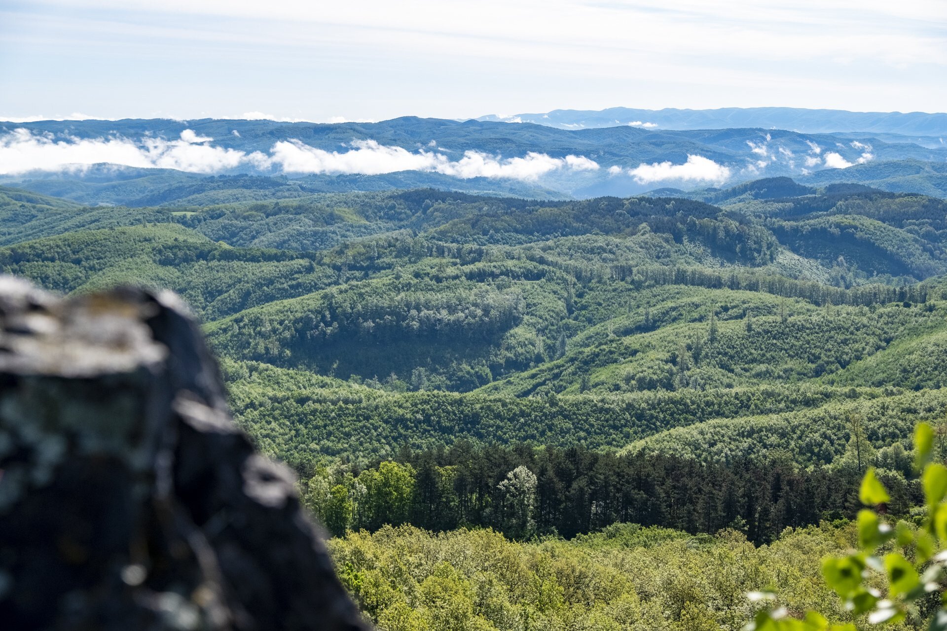 A Felső-Tarnai-dombság és a Vajdavár-vidék a Nagykőről, háttérben a Bükk
