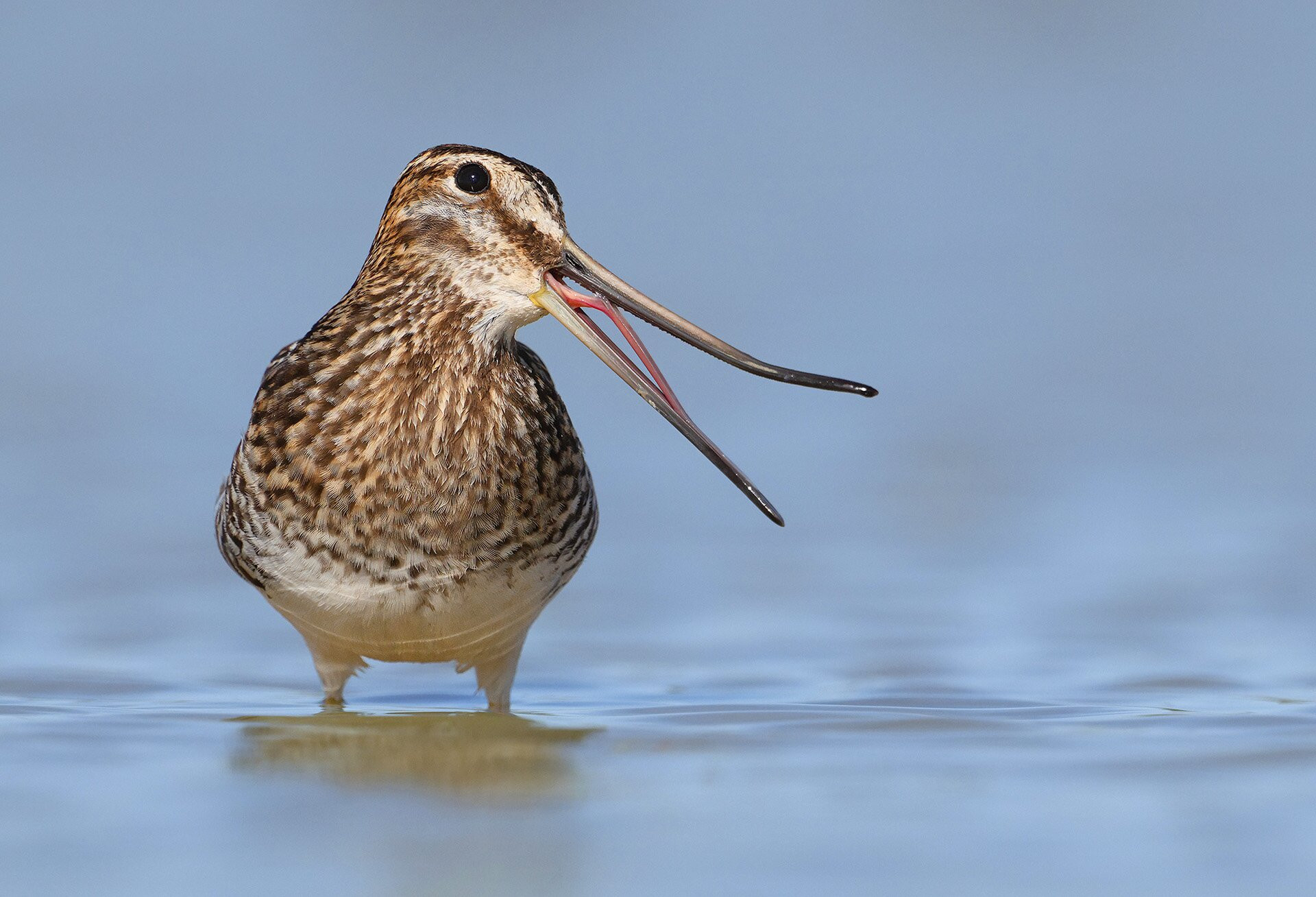 Csaba fotóján egy sárszalonka esetén láthatjuk ezt az érdekes csőrelhajlítós képességet, amit rhynchokinesisnek neveznek