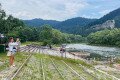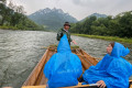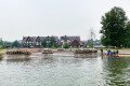 A darabokra szedhető tutajokat teherautókkal viszik vissza a starthelyre