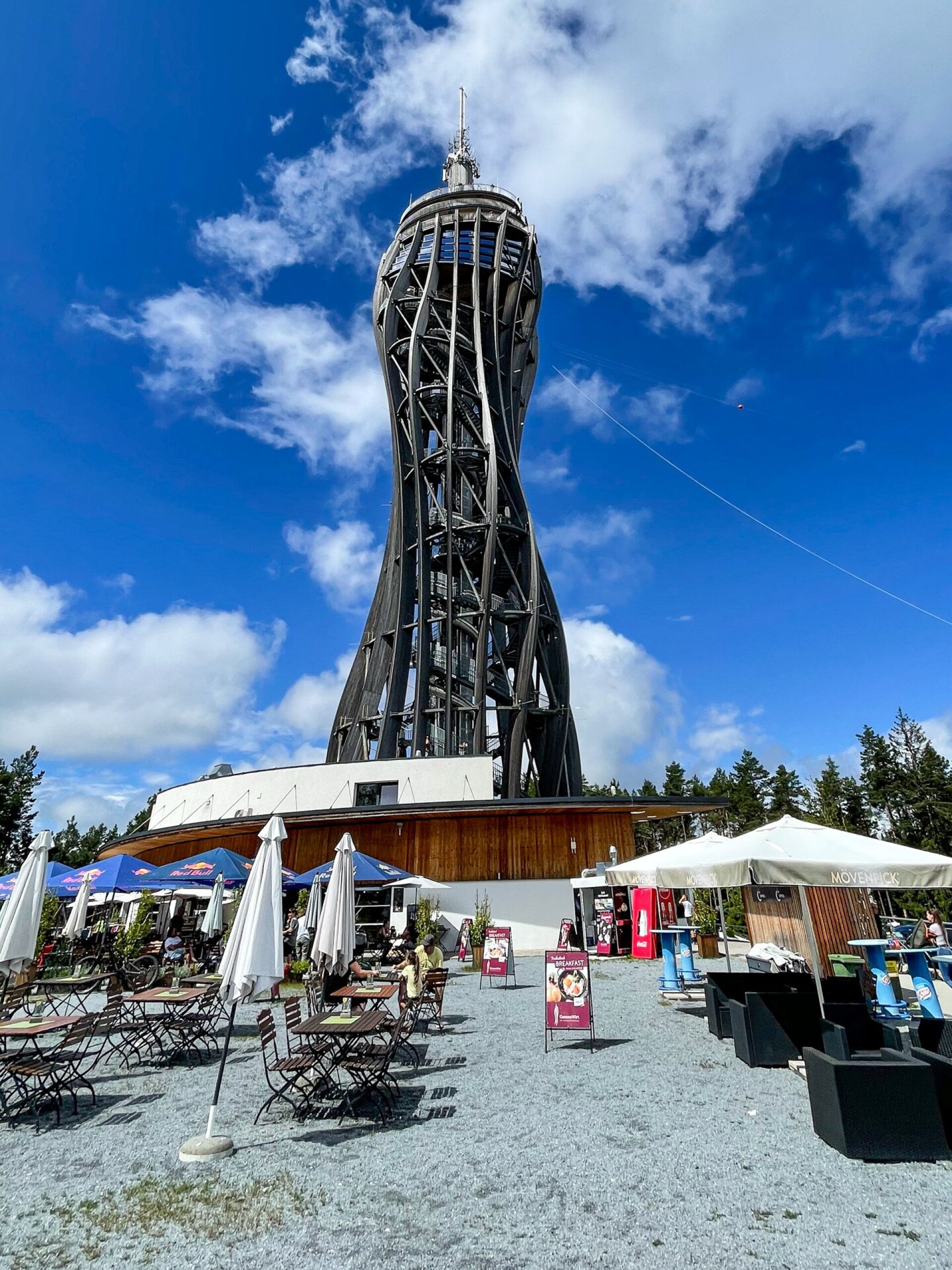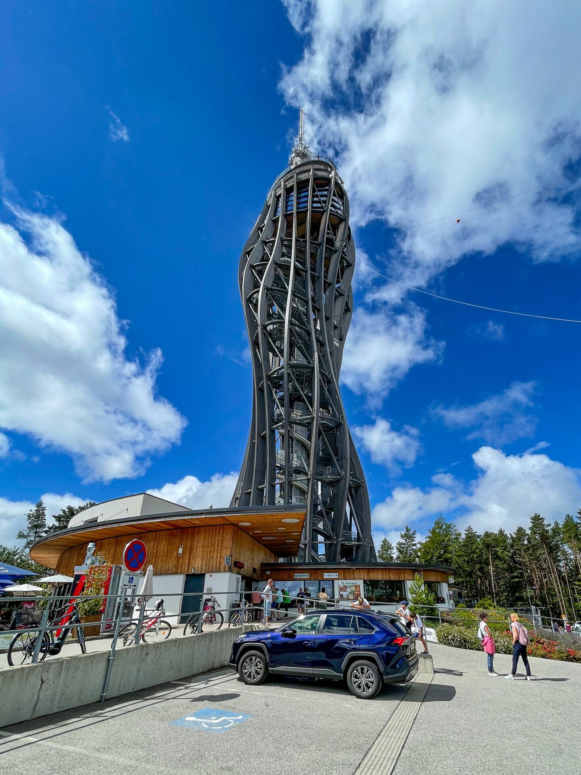 Két dologban is rekorder a 2013-ban átadott építmény: ez a világ legmagasabb faszerkezetű kilátója, és itt találni a világ legmagasabb fedett csúszdáját