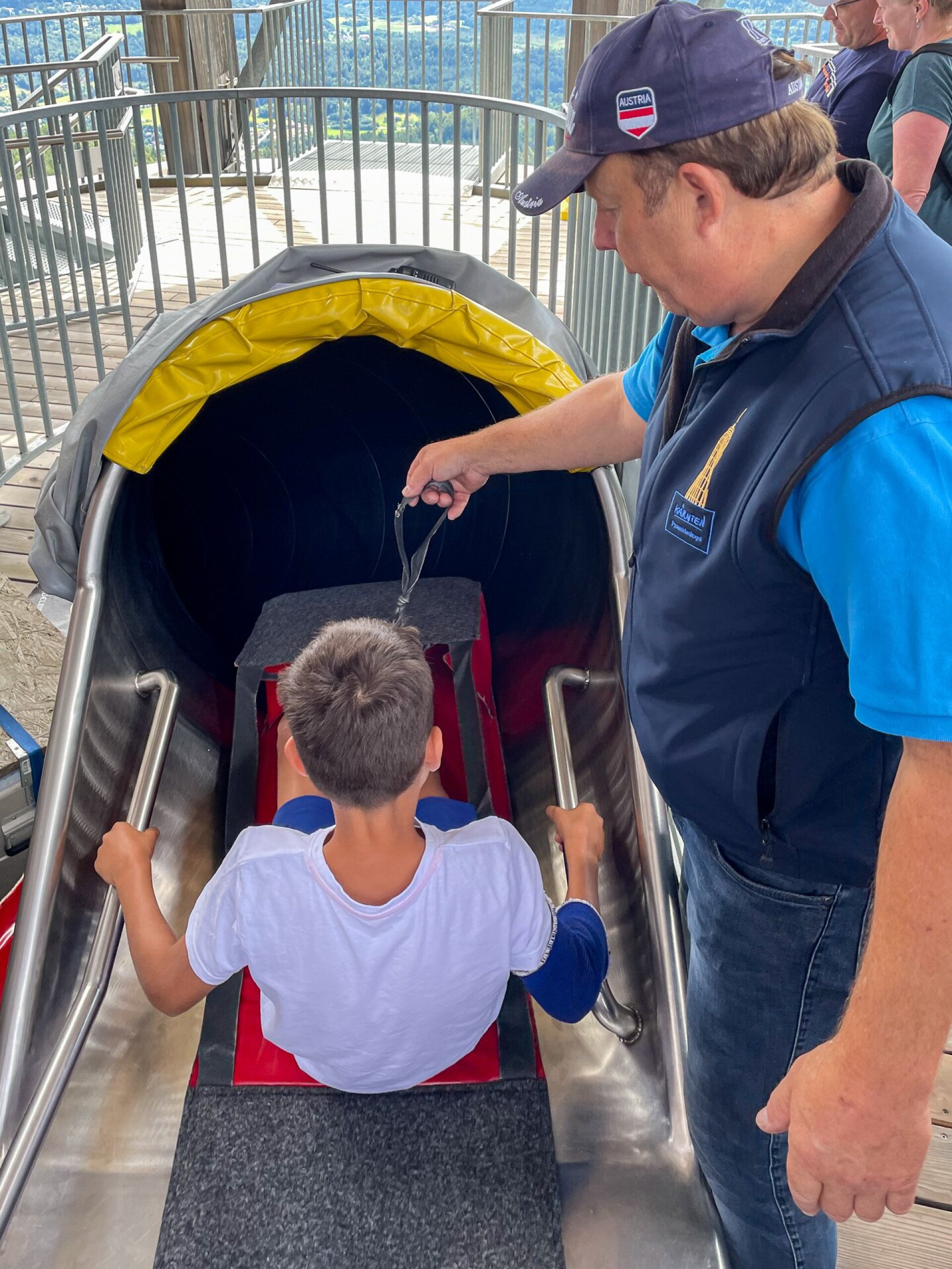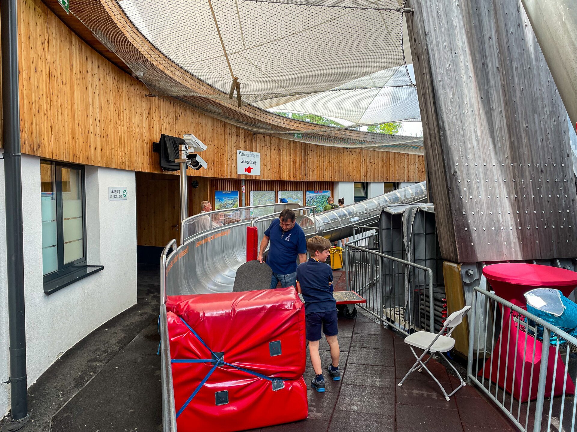 Egy kis filc "szánkó" és könyökvédő segítségével csúszhatunk le. A száguldás kb. 20 másodpercig tart a fedett csőben