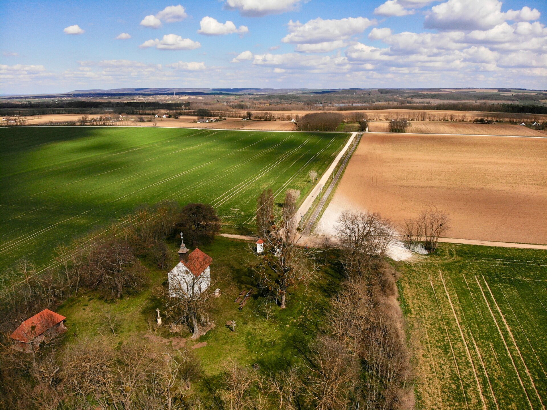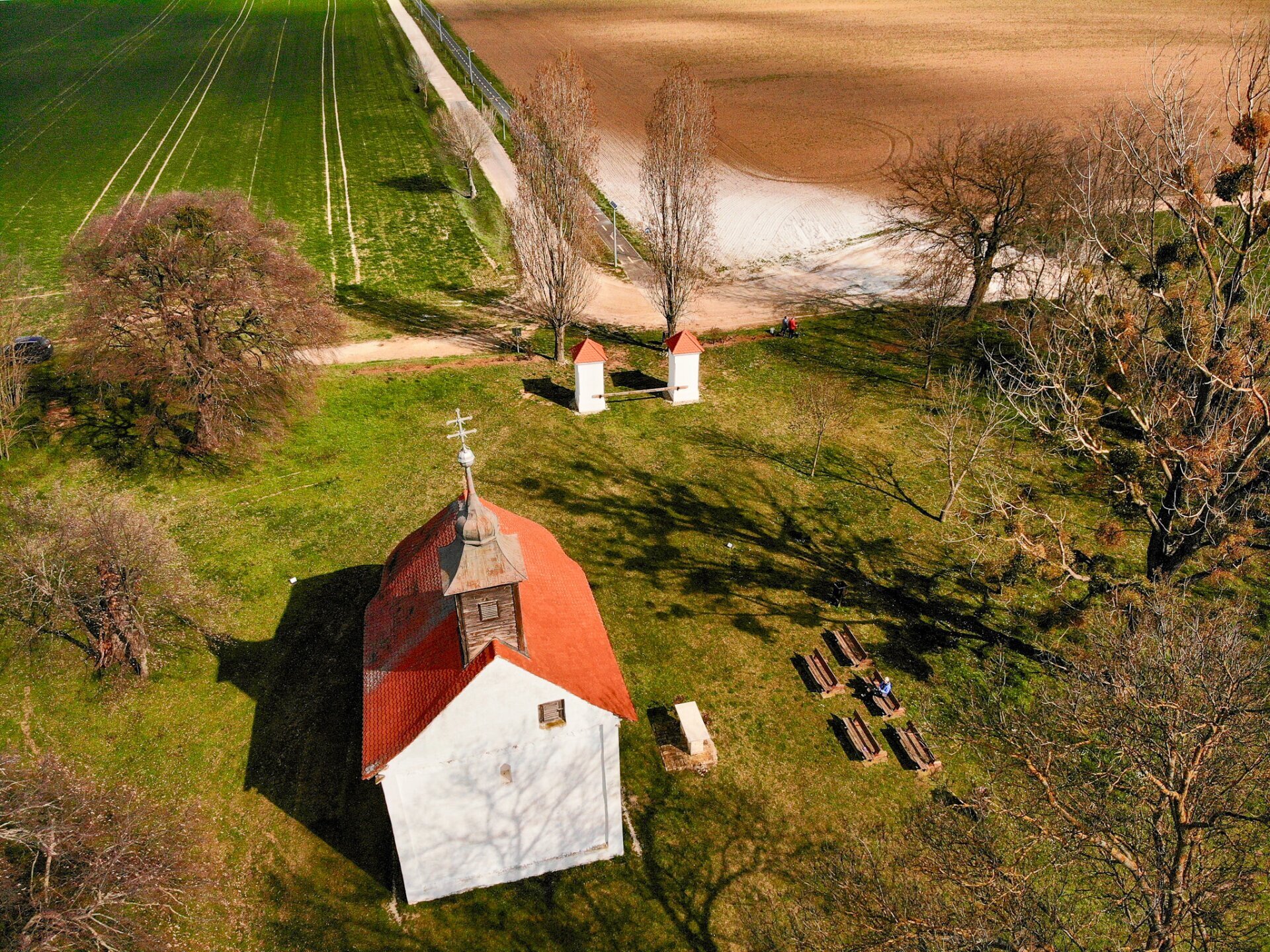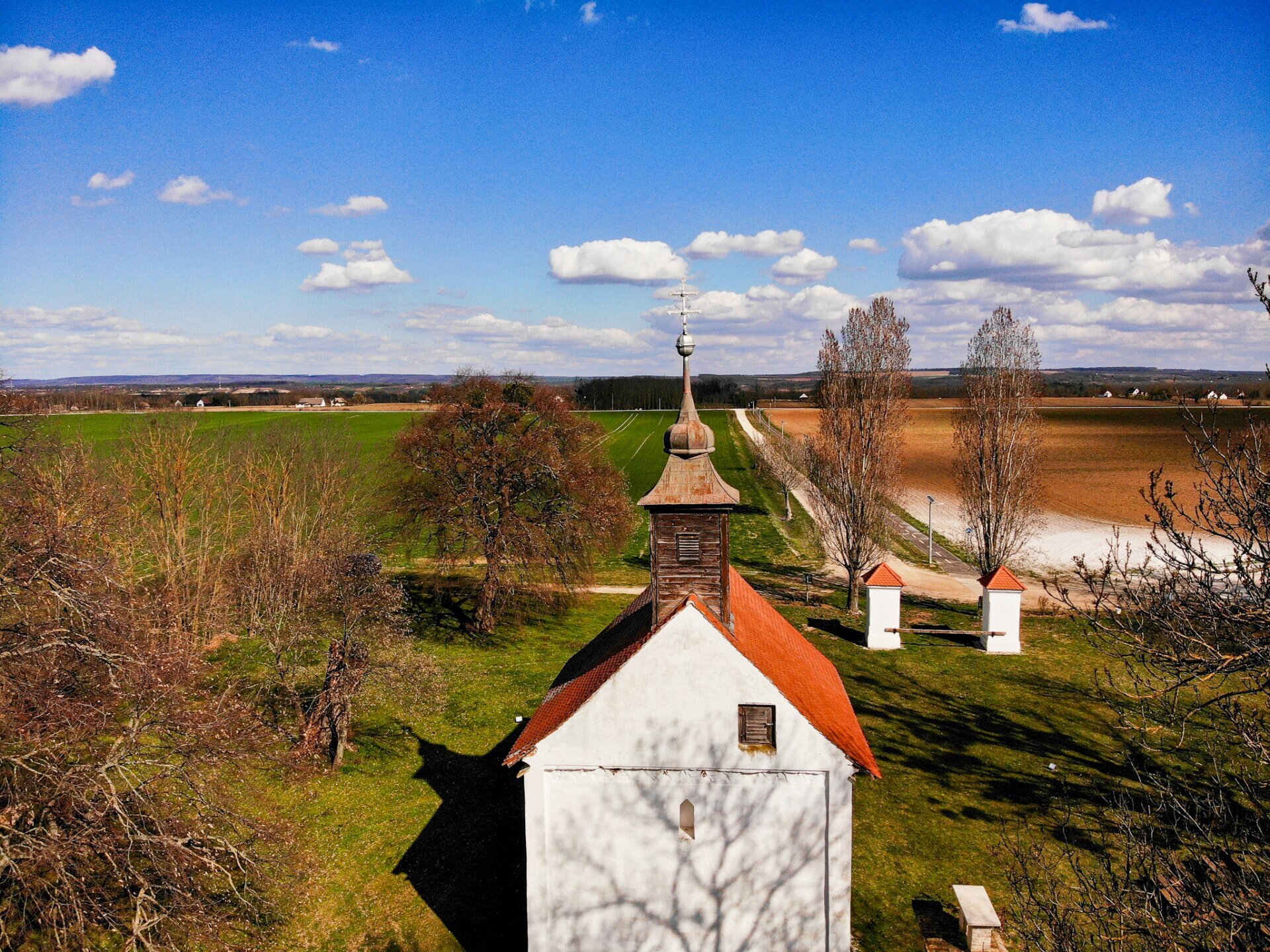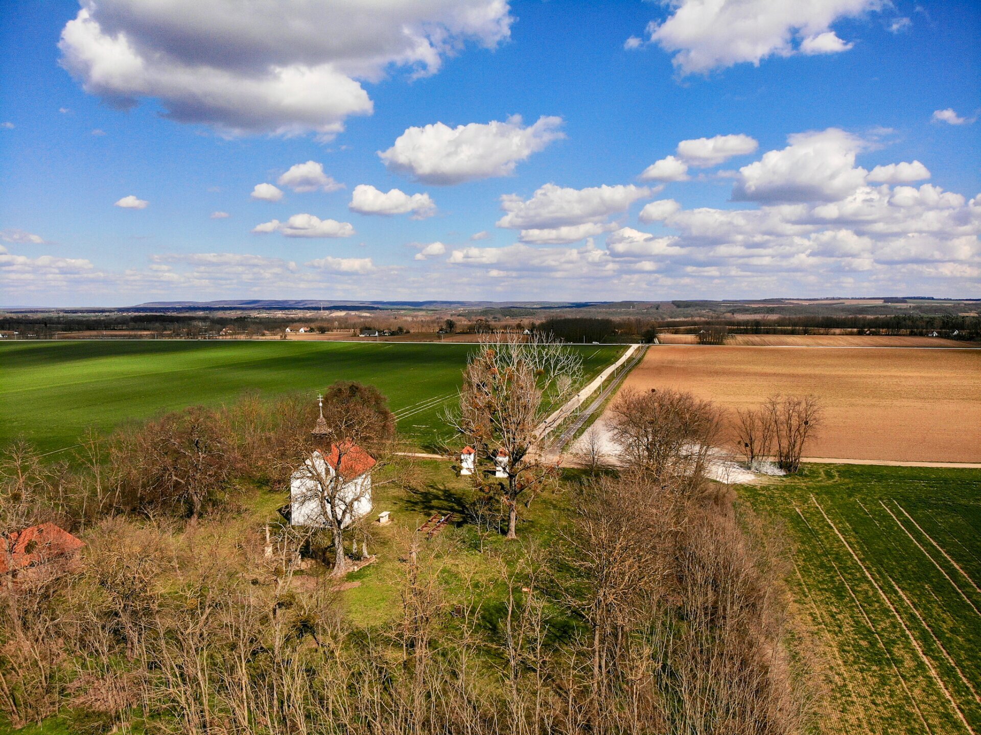 A Fehér Mária-kápolna és gondozott környéke madártávlatból