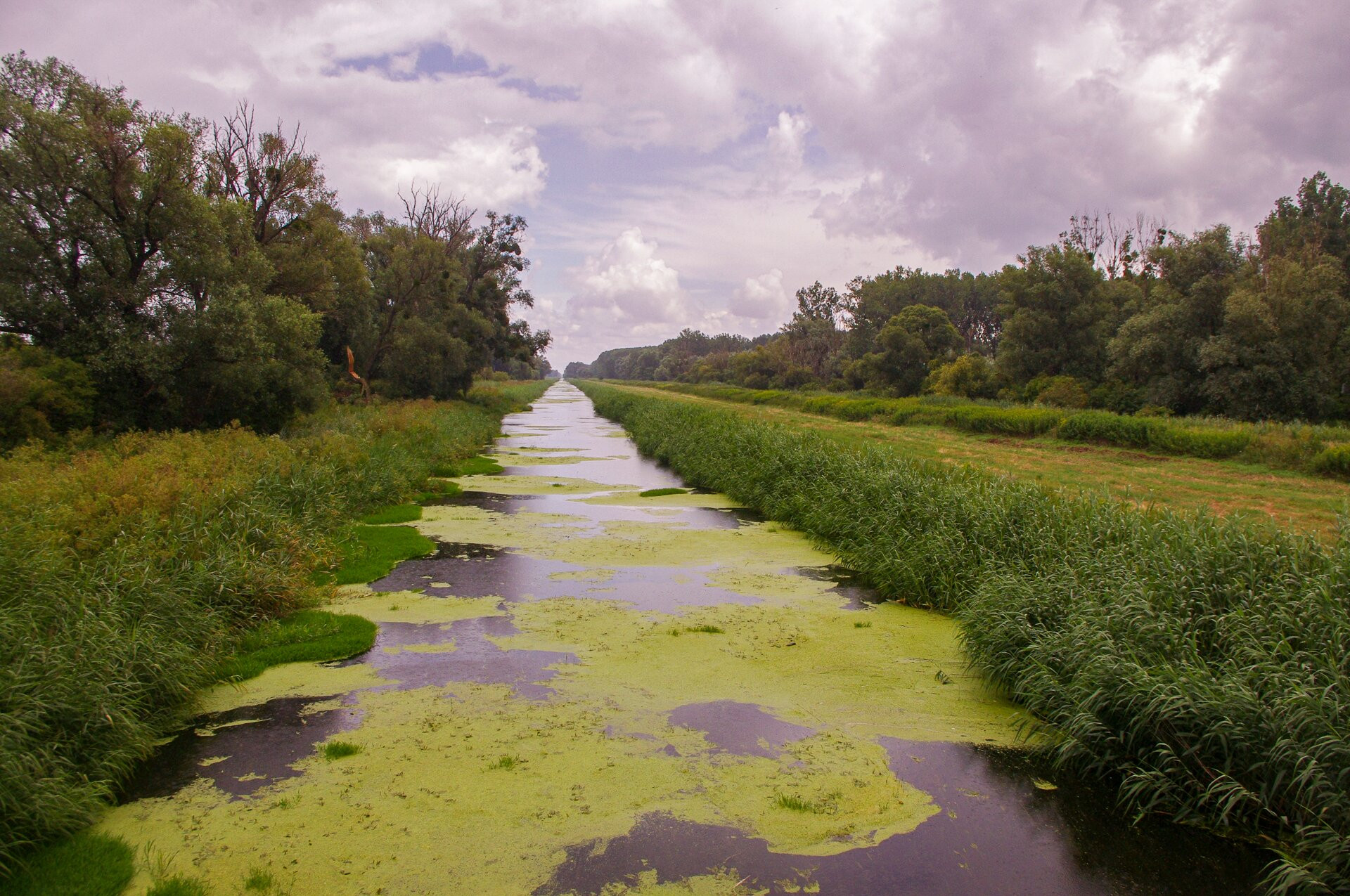 A Rábca ma már megzabolázott mederben viszi el a vizet a Hanságból