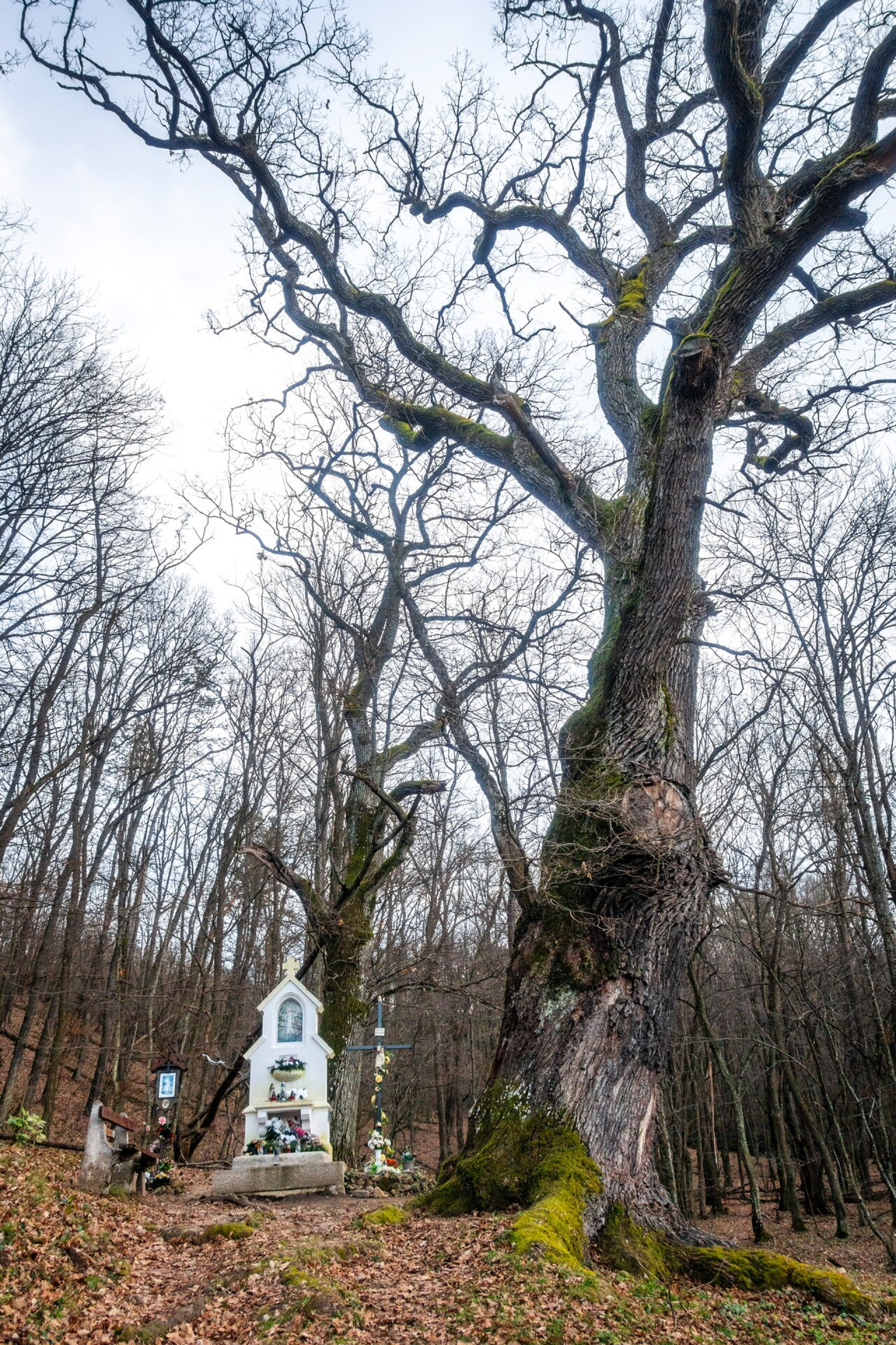 A hatalmas tölgy, tövében a Mária-képoszlop