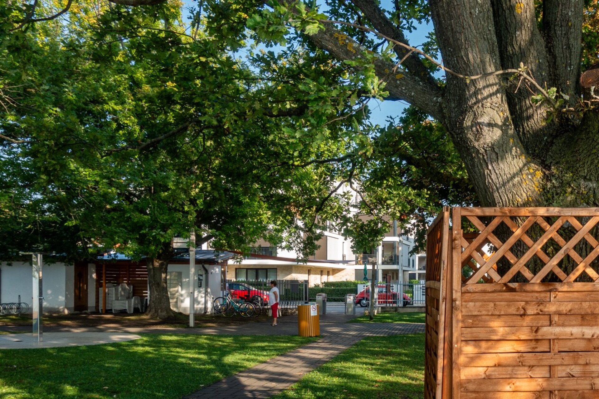 Előtérben a gyógyuló tölgyfa, a háttérben a megmérgezett juharfa
