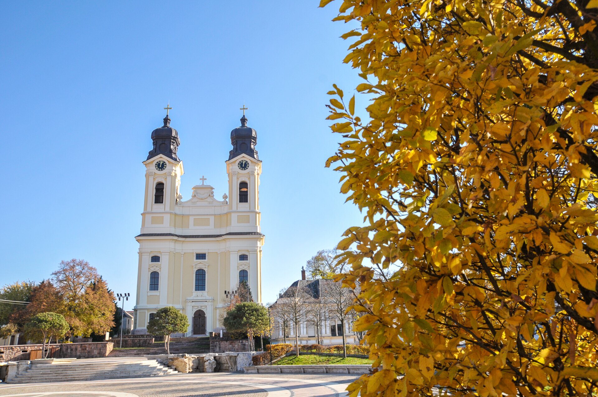 A Szent Kereszt felmagasztalása templom terveit a bécsi építész, Franz Anton Pilgram készítette, később Fellner Jakab vette át az építkezés irányítását, aki némileg át is dolgozta az eredeti terveket. Az építkezés közel 30 évig tartott, de a templom elkészültét Fellner már nem érhette meg, 1780-ban meghalt, a templomban helyezték örök nyugalomra.