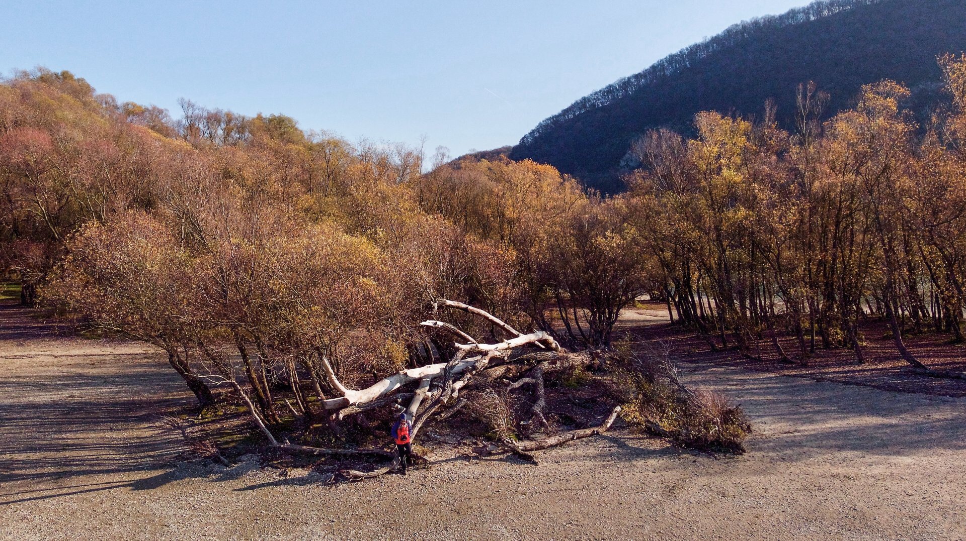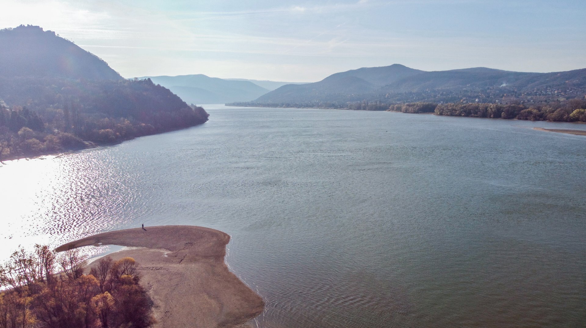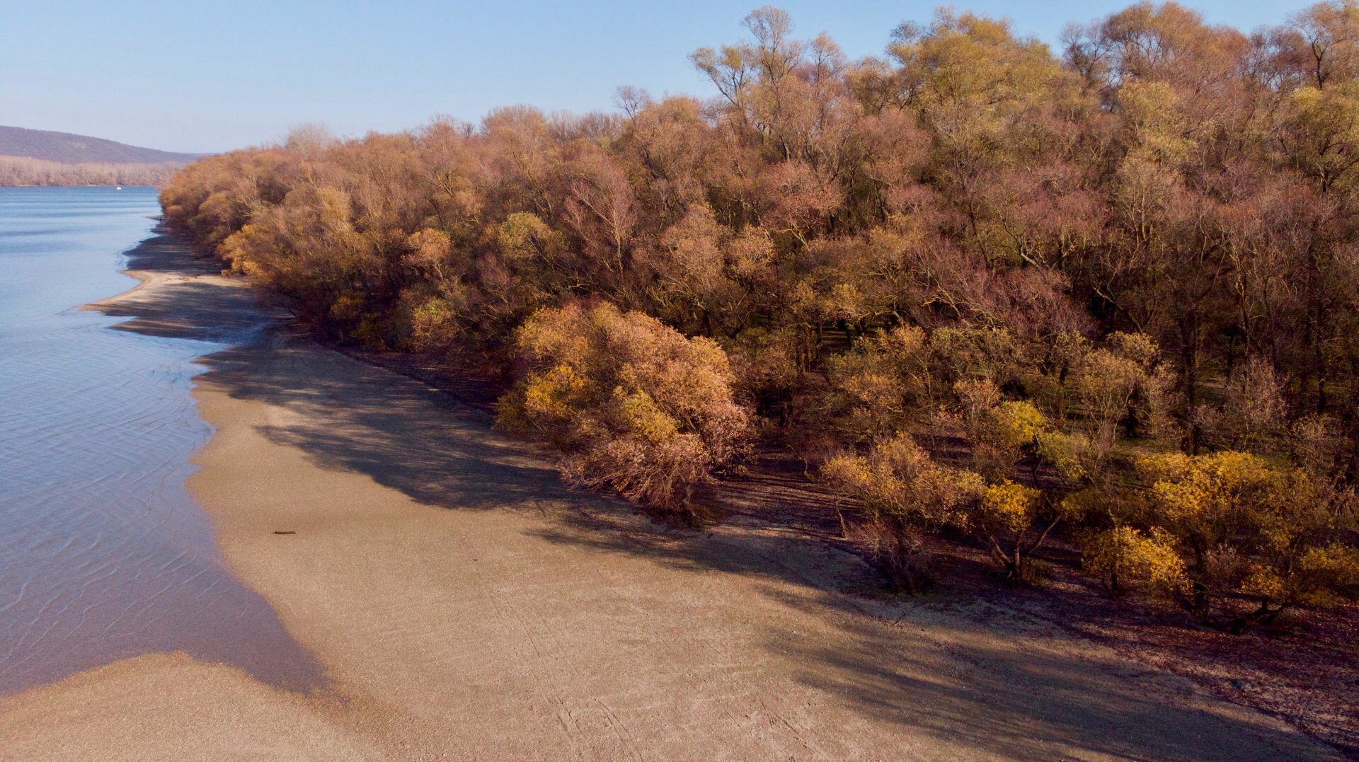 Halvány napsütés, kavicsos Duna-part kicsi homokszigetekkel. Semmi extra, egyszerűen csak gyönyörű a táj madártávlatból is. A fák késő ősszel, mielőtt levetik lombruhájukat pasztell színvegyületet öltenek magukra.