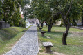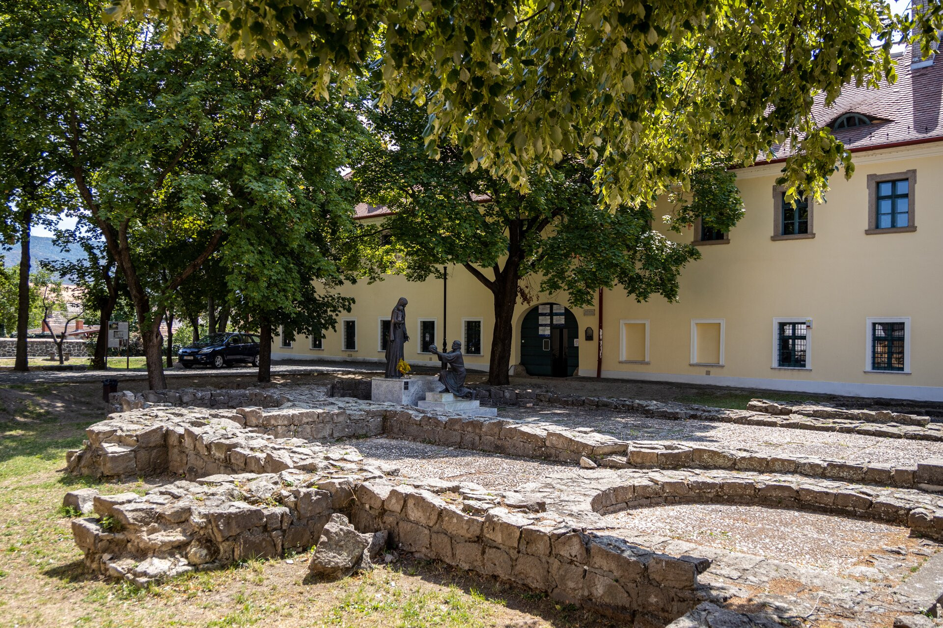 Az egykori bencés apátság romjai, mögötte a Pásztói Múzeum épülete. Innen kezdheted a tér bejárását