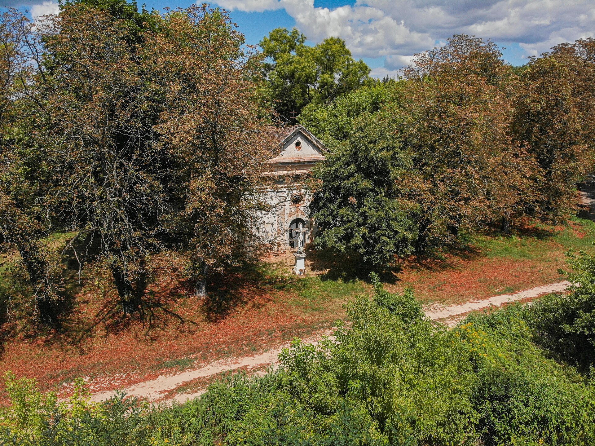 Jól elbújt a fák között a sörnyepusztai Somssich-kápolna