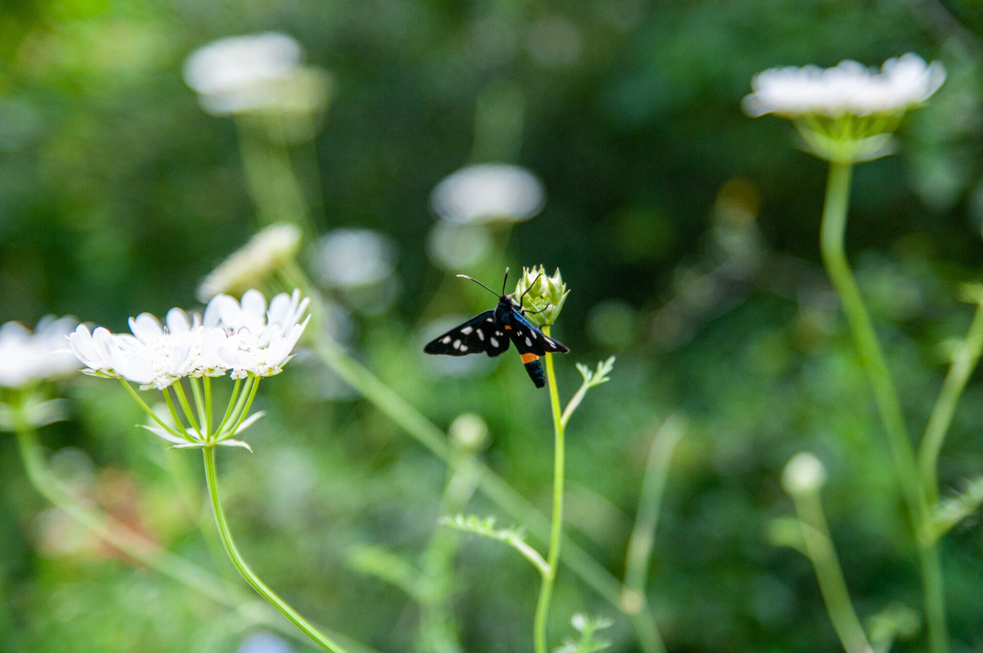 Fehérpettyes álcsüngőlepke, aki nem a repülőképességéről híres, cserébe viszont a teste olyan méreganyagot tartalmaz, ami miatt nem kapkodnak utána a rovarevők.