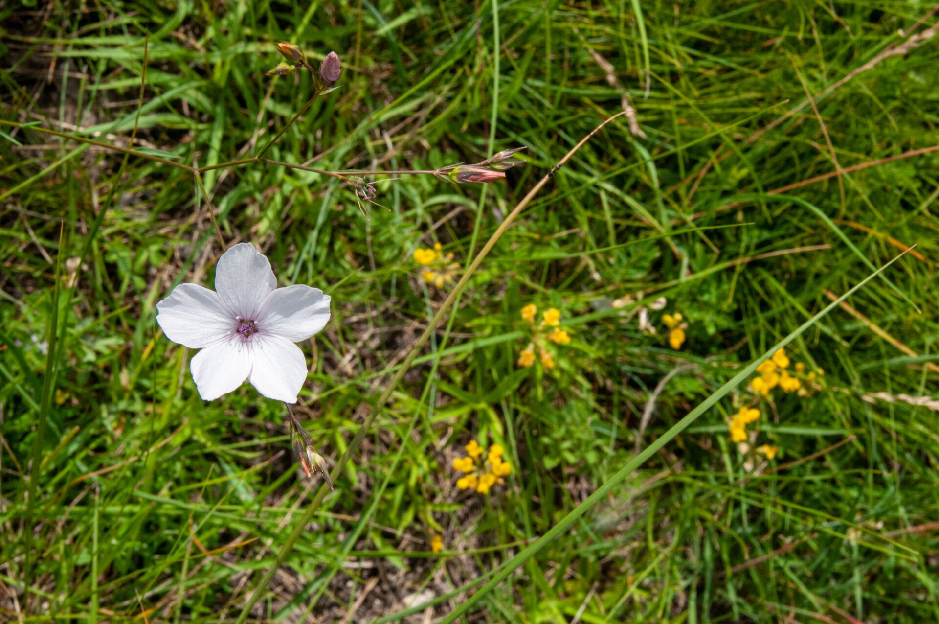 Az égszínkék virágú hegyi len sokfelé előfordul, és ez a faj is pályázhatna a fennsík legszebb virága címre.