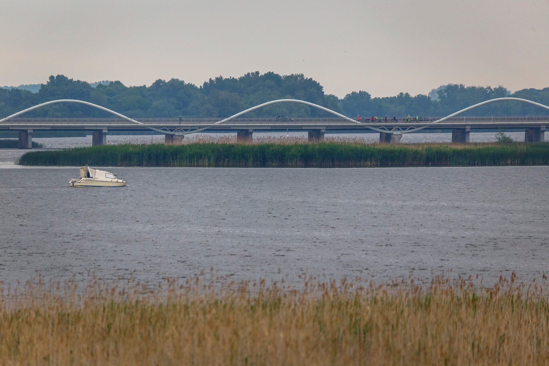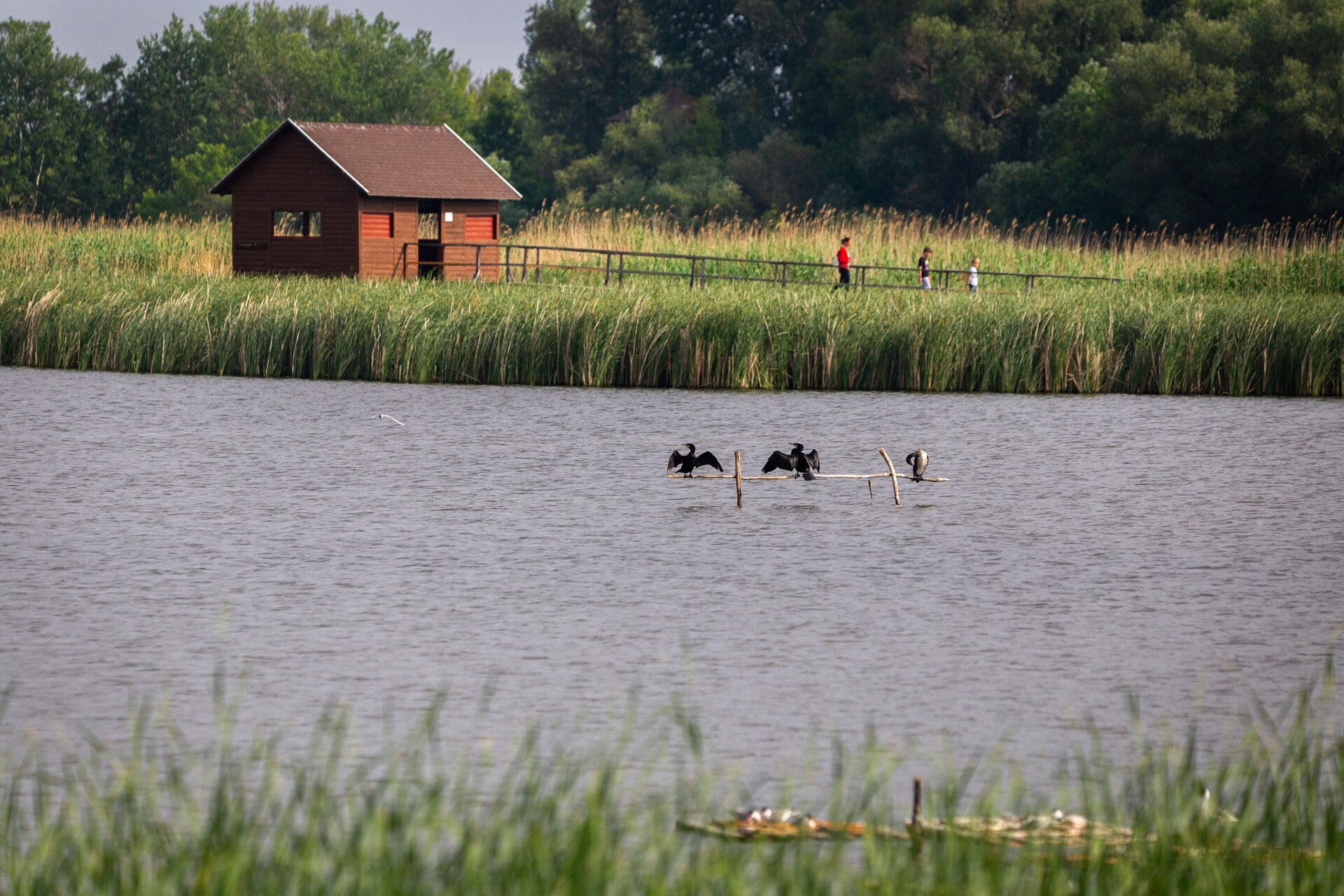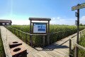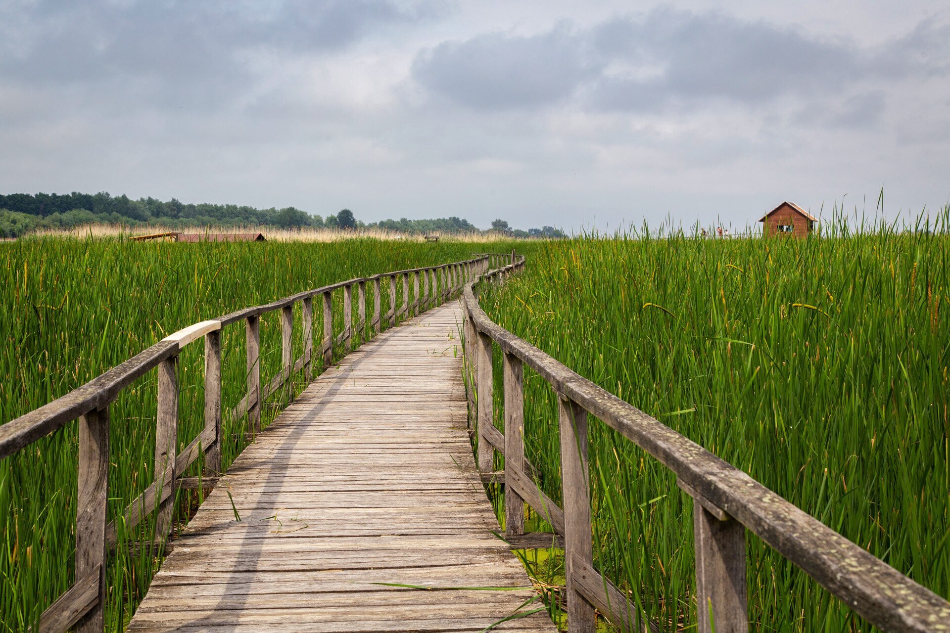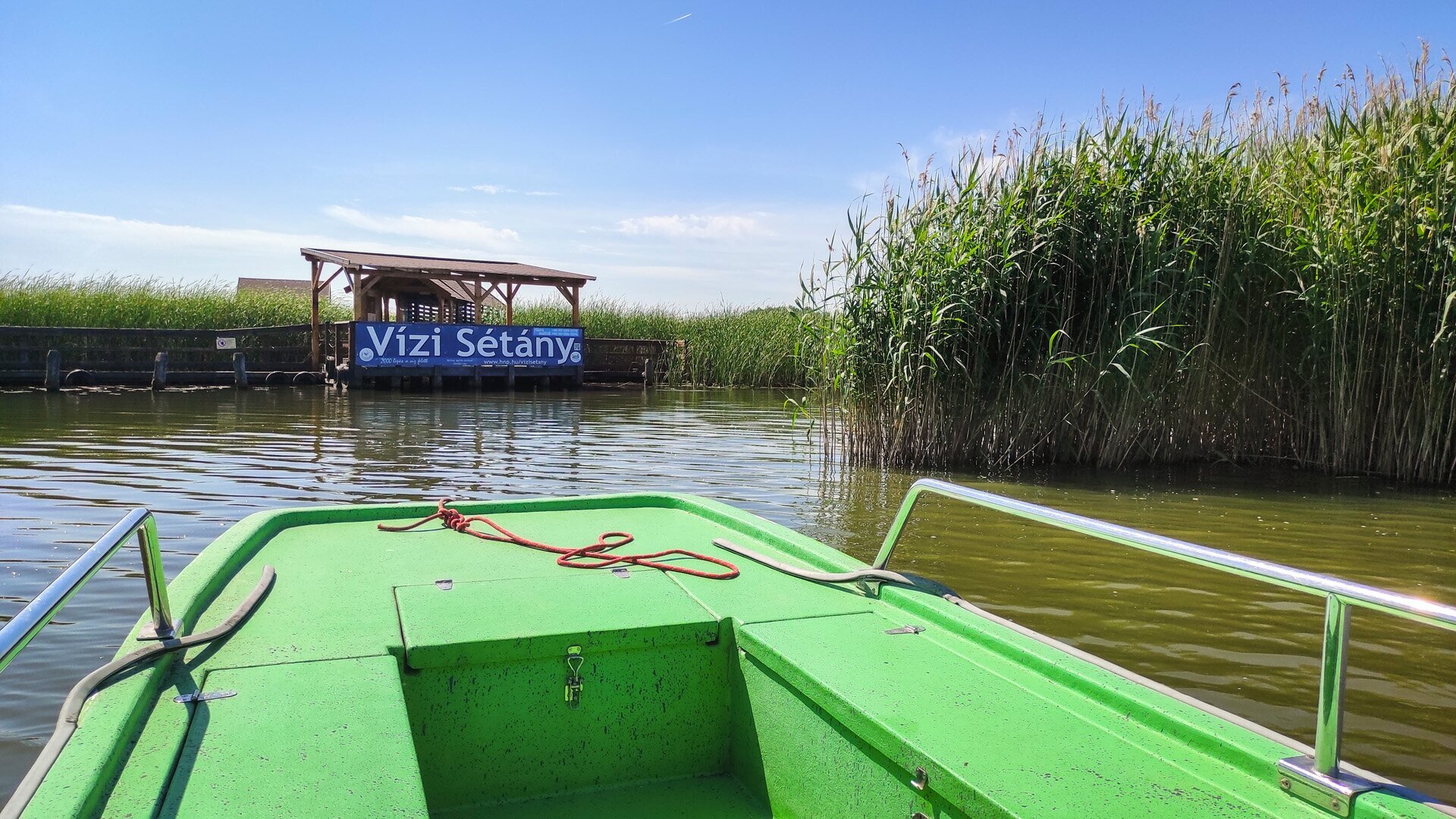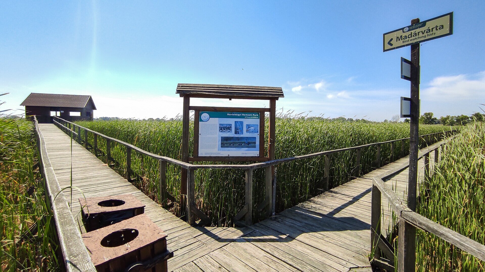 Víz felett kanyargó tanösvény a Tisza-tavon
