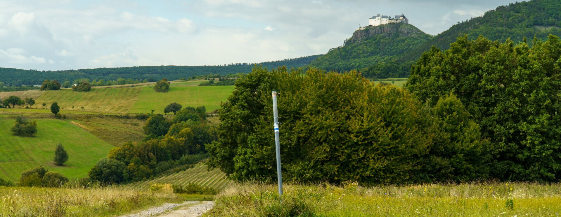 Az útvonalat tehát ismét odébb kellett helyezni (ennek okairól ebben a cikkünkben olvashatsz részletesen), a Hegyköz északi peremére került; mostantól Pusztafalut, Füzérkajatát, Füzérradványt és Pálházát érintve köti össze Füzért Kishutával. Van egy alapvető különbség a régi és az új nyomvonal között: a kék jelzések ezidáig lent, a Hegyközt kimosó patakok egyike mellett, völgyben vezettek, mostantól pedig a terület északi, magasabb peremén fognak. A Másfélmillió lépés nyitó képsoraiból és a régi pecsételőfüzetek borítójáról is ismert, híressé vált zempléni panoráma a hegység centrumára és a füzéri várra éppen a régi nyomvonal északi végén, még a völgy fölött nyílt, utána viszont egy helyenként csalános, dzsindzsás, kellemetlen és kilátásmentes szakasz következett Bózsváig.